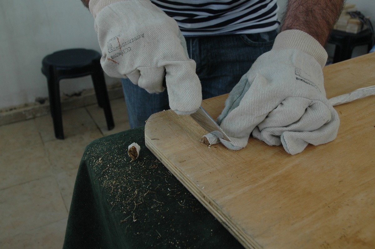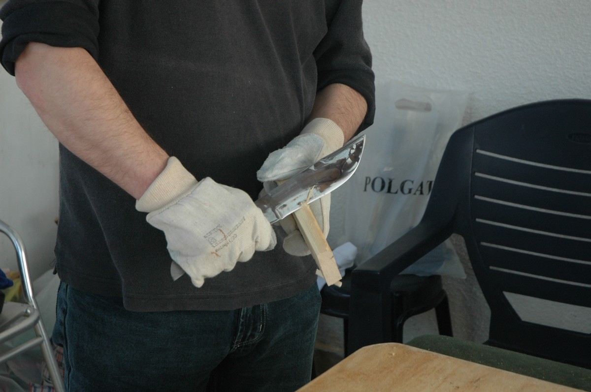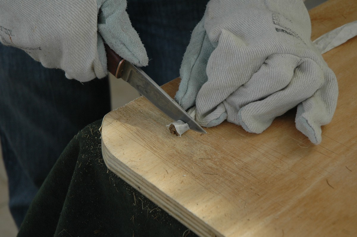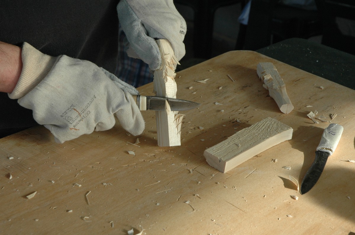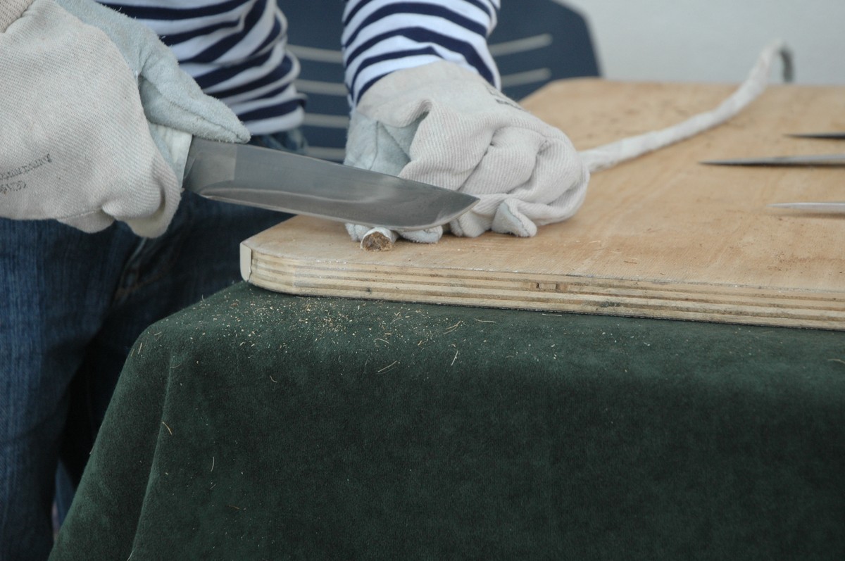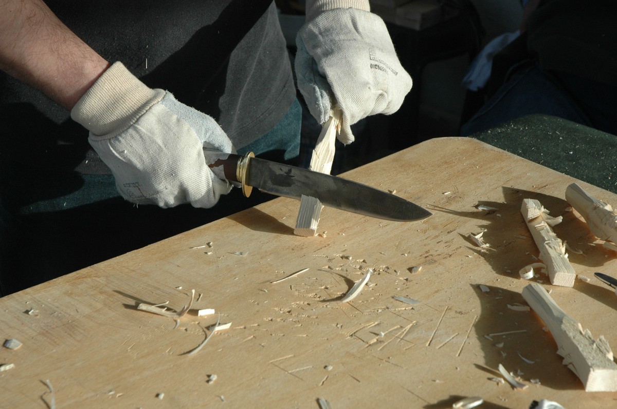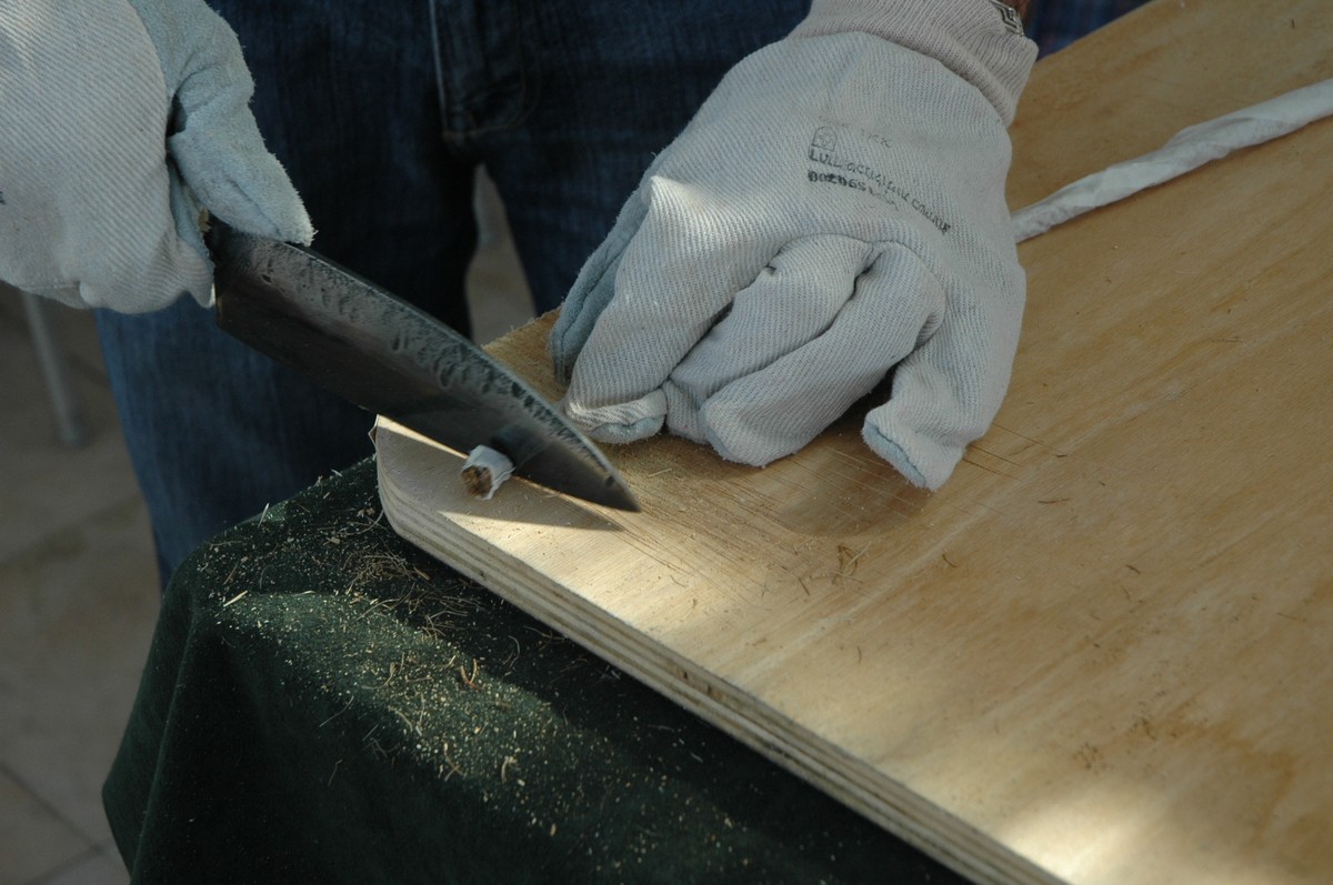 Мы уже как-то настроились на то, что нож показал результаты, указанные выше. И посему к строганию подошли со всей ответственностью, учитывая опыт удержания этого ножа с такой узкой рукоятью. Дощечку он не расколол, но этого и следовало ожидать, учитывая слишком легкий клинок. Строгать вроде бы было удобно, контролировать можно легко процесс, но, увы, нож строгал крайне неохотно. Стружку снимал с трудом, отщипывая щепу небольшими кусочками. И стал вязнуть в дереве после нескольких движений. Построгав еще немного для проформы, мы прекратили, поставив 2 балла.