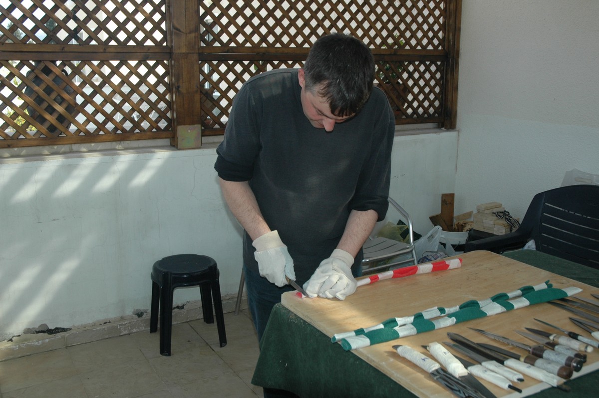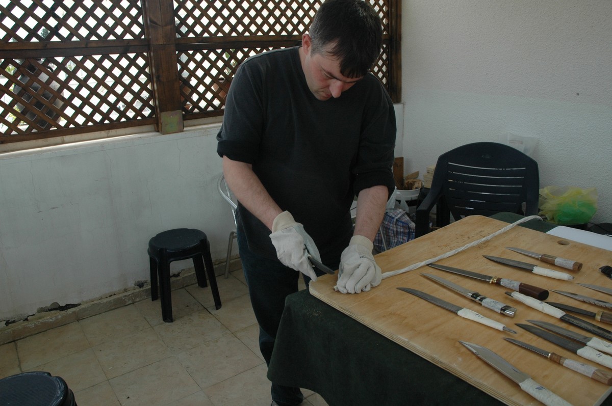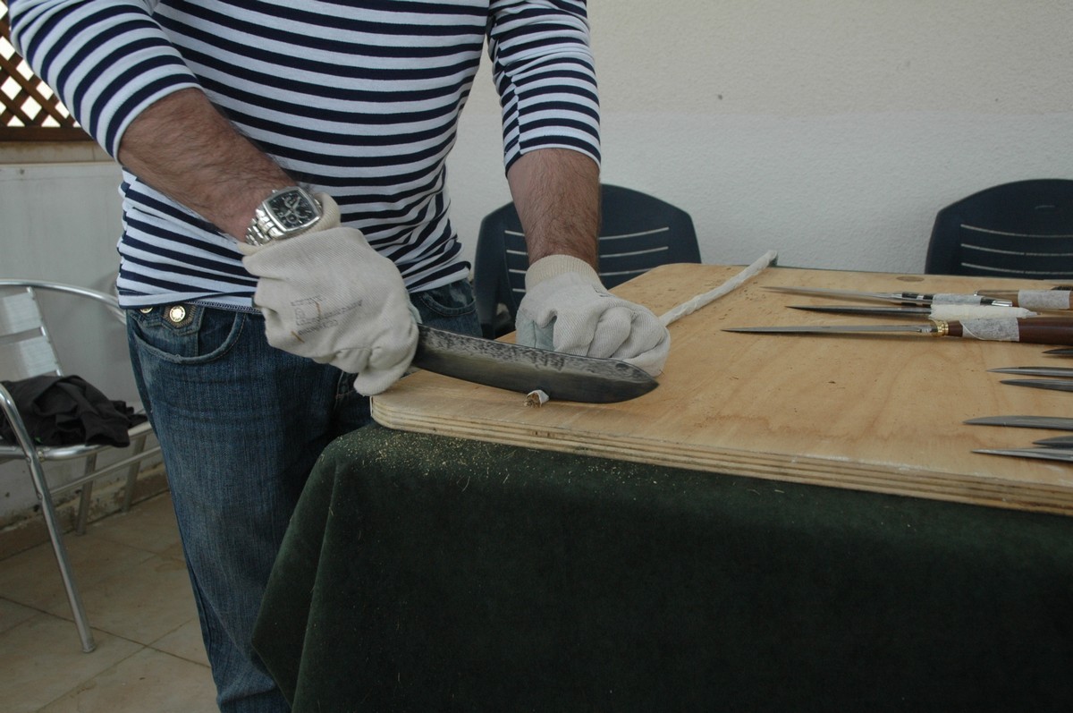Чем-то очень напомнил знаменитый кхукри. Общим видом, легким изгибом лезвия. Нож не очень большой, с узким клинком и выполнен из стали О-1. Спуски не очень высокие, по ощущениям ближе к линзе. В принципе, сидит в руке уверено, рукоять с небольшим брюшком и удерживать нож легко. Я бы сказал, что это «нож последнего шанса», как с некоторого времени стали называть ножи, которые можно иногда носить на подвесе на шее, в скрытом ношении, и использовать его как оружие или инструмент в крайних случаях. По крайней мере, мне этот нож таковым и показался. Осталось проверить, что он может сделать…