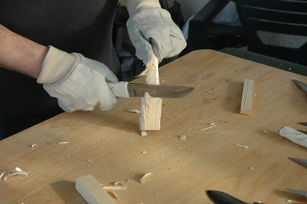 Но вполне приемлемо нож взялся за обтачивание колышка. Как сказано выше, мы сначала подумали, что и здесь легкий вес будет помехой, но ошиблись. Нож хоть и входил неглубоко, зато засечки оставлял ровные. Клинок не вяз в дереве при ударе, что не могло не радовать. А посему, ножу в этом тесте было поставлено честная и крепкая оценка в 4 балла…