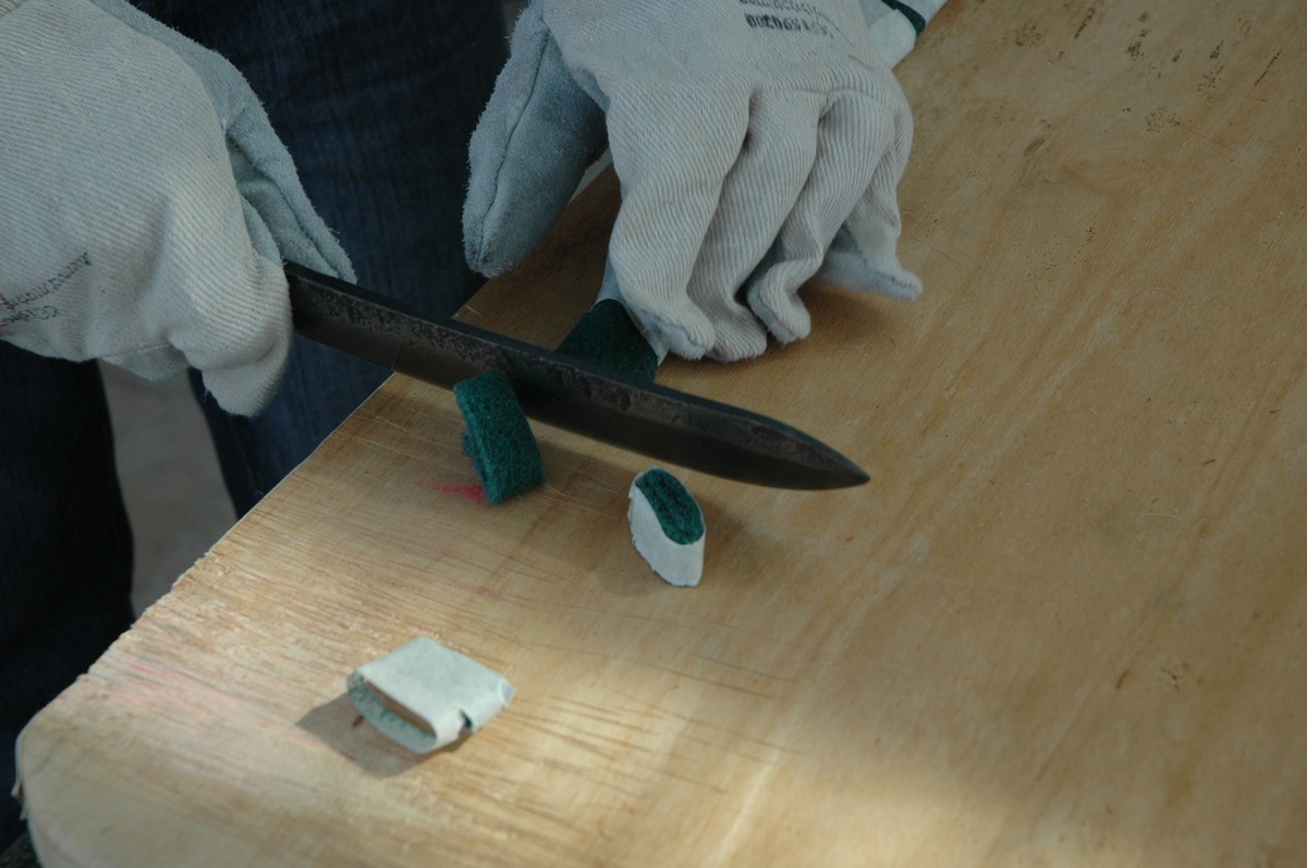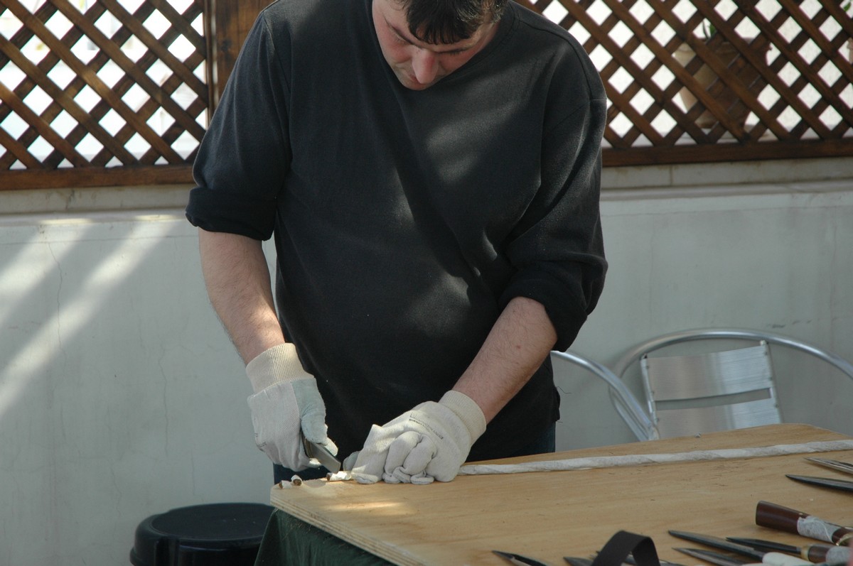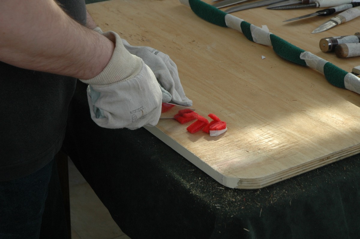 Что можно сказать… Спуски, на мой взгляд, немного подвели клинок. Нож резал неохотно и тяжело, чаще использовалась именно округленная часть клинка, поэтому надо было протягивать и вгрызаться с заметным усилием. Плюс сказывалась общая геометрия, когда постоянно приходилось менять положение руки, и из-за этого нож стал вертеться в руке, заставляя прилагать усилия. И комфорт реза был потерян… Честно доведя резку до момента, когда нож стал попросту мылить рез, тесты были остановлены.
