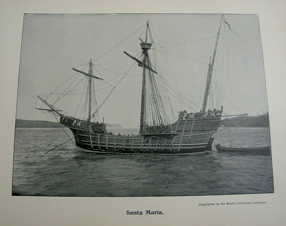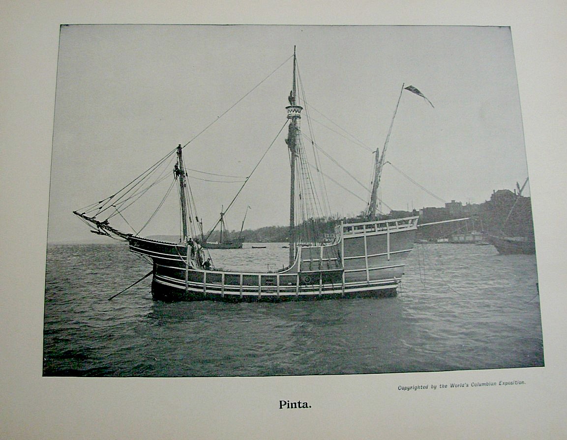 - Это еще не много. У меня лишь небольшая коллекция. Вот, например, «World Columbian exposition», напечатанная в 1893 году и посвященная выставке. В ней немало картинок, объясняющих и рассказывающих о Белом городе, как называли экспозицию. Все то, что выставлялось – техника, произведения искусства, скульптуры, технические новинки – обо всем рассказано в книге, этакий краткий путеводитель. Кстати, вот изображения трех кораблей Колумба: «Санта-Мария», «Нинья» и «Пинта».
