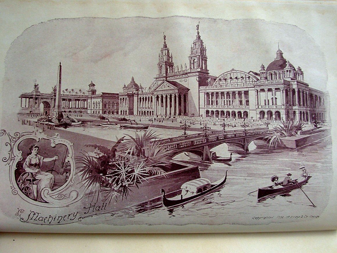- В 1892 г. Чикаго был небольшим рабочим городом. И казался серым и черным из-за того, что множество угольной пыли выбрасывалось в воздух, и она оседала на всех домах и улицах. Основной рабочей силой были паровые двигатели, работающие на угле, и это в немалой степени тоже способствовало выбросу угольной пыли и сажи…