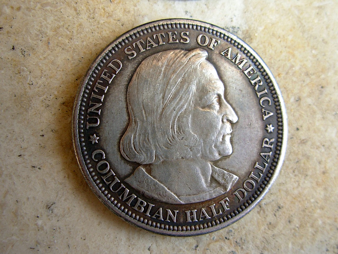 С одной стороны вы видите изображение Колумба в профиль. На другой стороне – изображение «Санта-Марии», на которой Колумб прибыл в Америку, а так же изображены два полушария Земли, как на глобусе. Эти монеты имели реальное хождение в 1892-93 гг. и было их выпущено довольно немало.