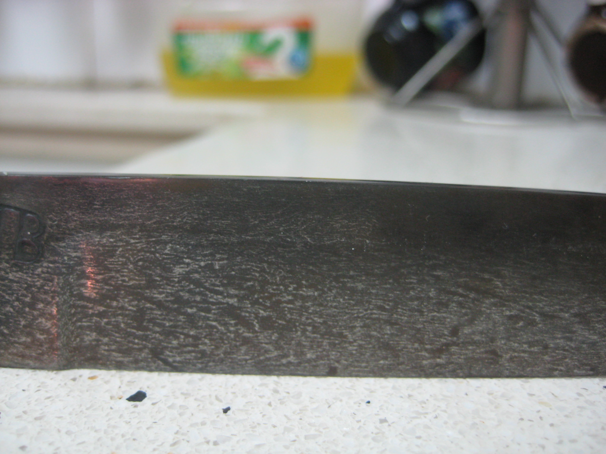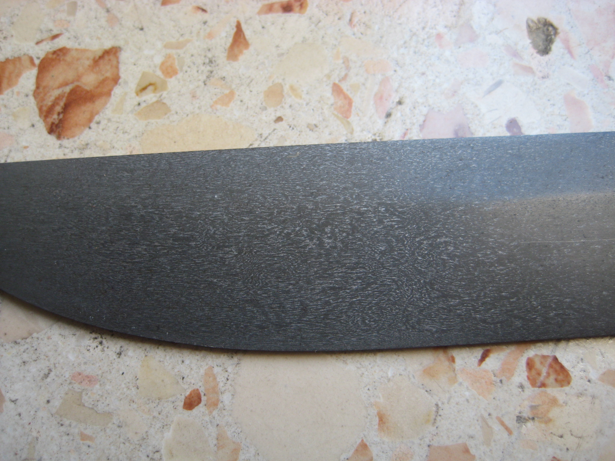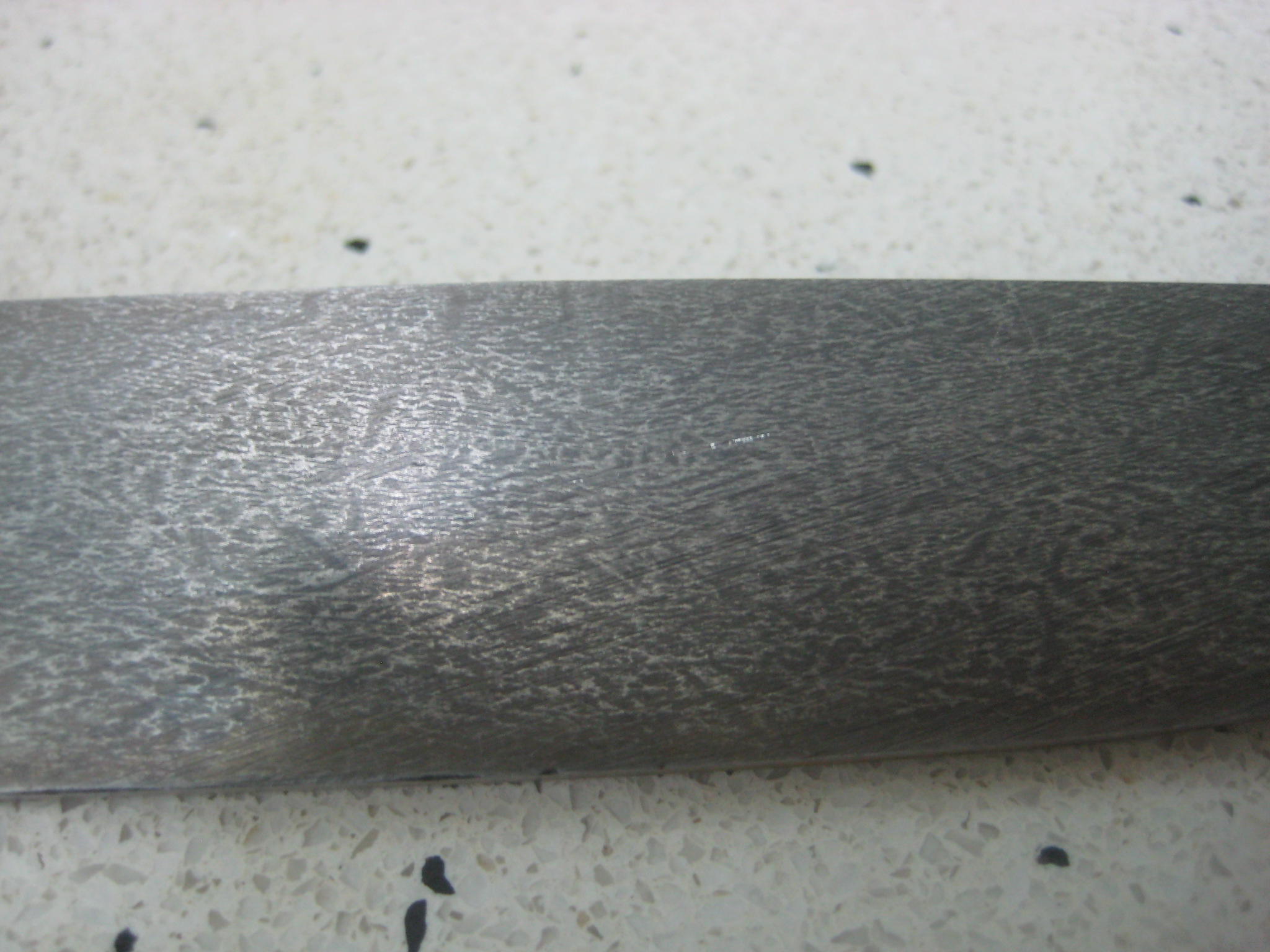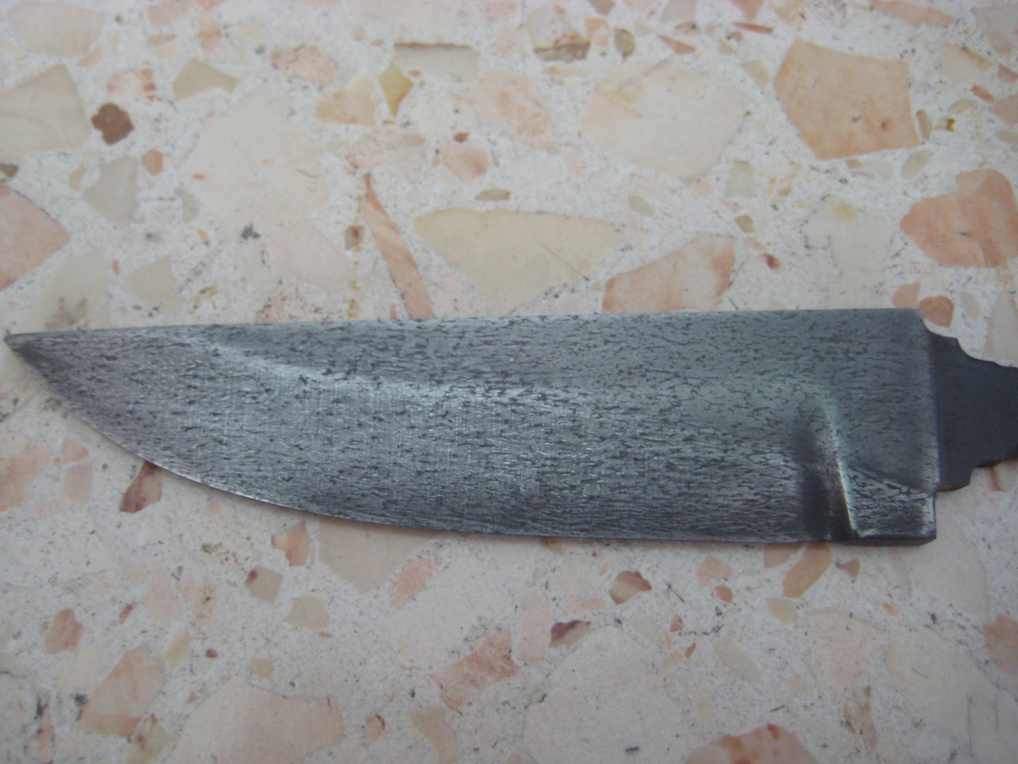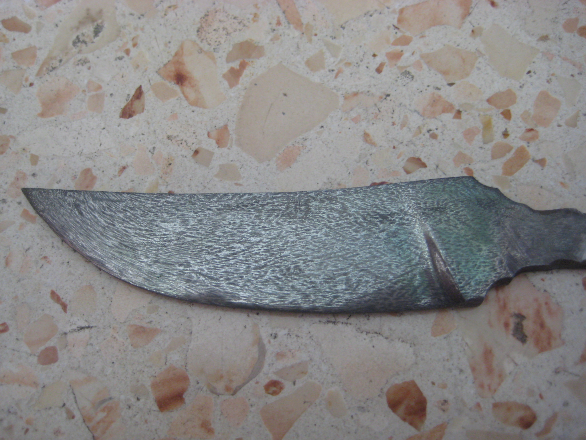 вы были правы. что клинок перетравлен.пришлось перешлифовывать его заново.убрал где то 1.5мм от общей толщины.перетравливал его в лимонной кислоте за неимением больше ничего подходящего.пробовал травить в электролите.результат 0.вот что получилось .