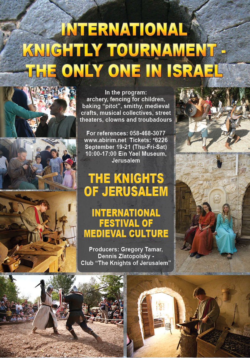 • Международный рыцарский турнир – единственный в Израиле. И детям и взрослым будет интересно увидеть самый настоящий средневековый рыцарский турнир своими глазами. Только у нас израильские профессиональные бойцы, посвятившие тренировкам долгие годы, сражаются с не менее опытными бойцами из других стран. Приходите болеть за сборную Израиля по историческому фехтованию!