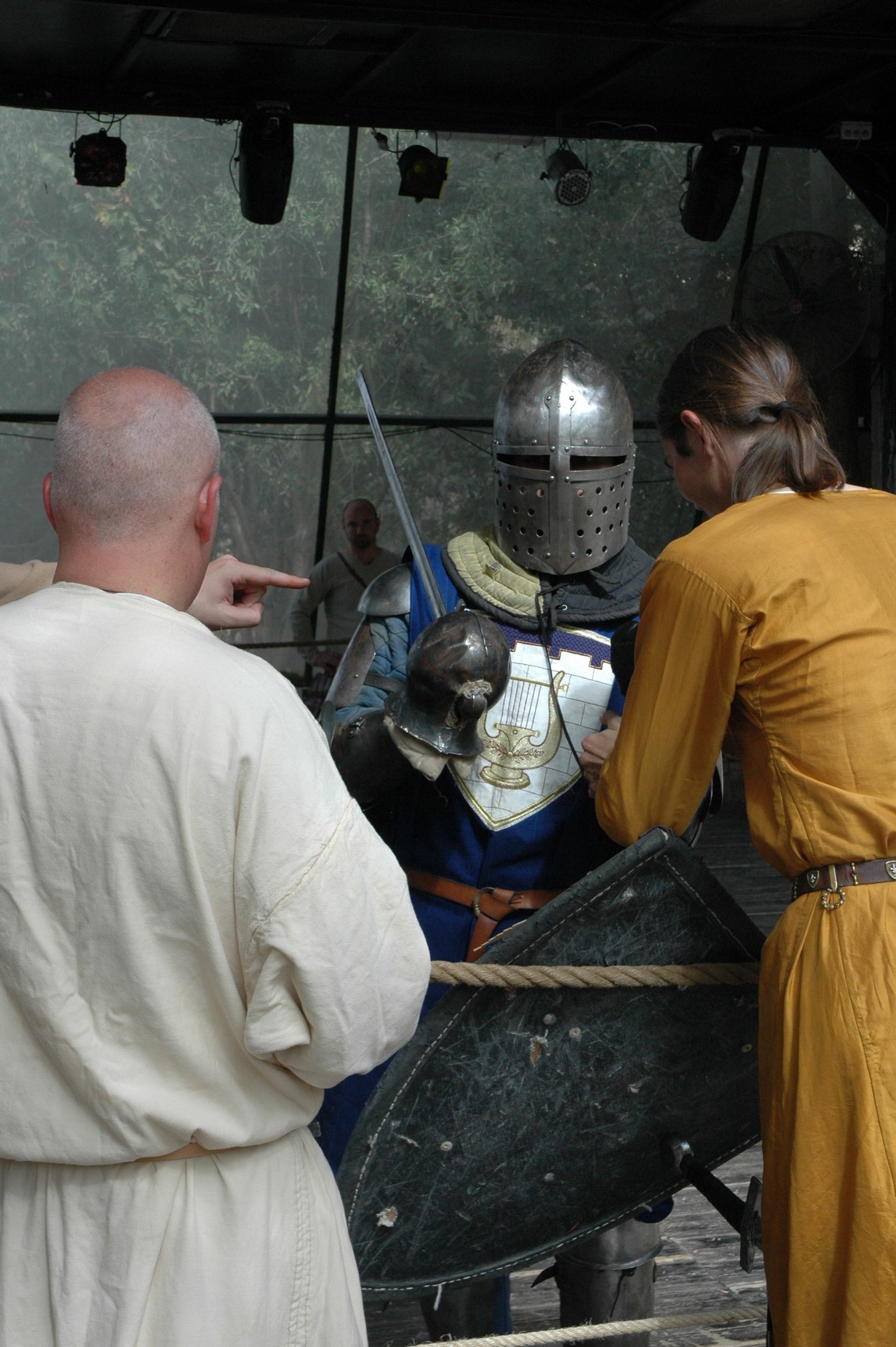 А вот эта милая девушка по имени Анна, за которую мы дружно и искренне переживали - первая женщина-рыцарь Израиля ;) Она отважно вышла надавать по башке сопернику, который сначала отнесся вполне себе легкомысленно к тому, что перед ним девушка. Хоть и в тяжелых доспехах, Аня довольно бодро накостыляла рыцарю (кажись, это был боец из дальнего зарубежья...), хоть и технически это было тяжело, но прыгать он устал быстро :lol: