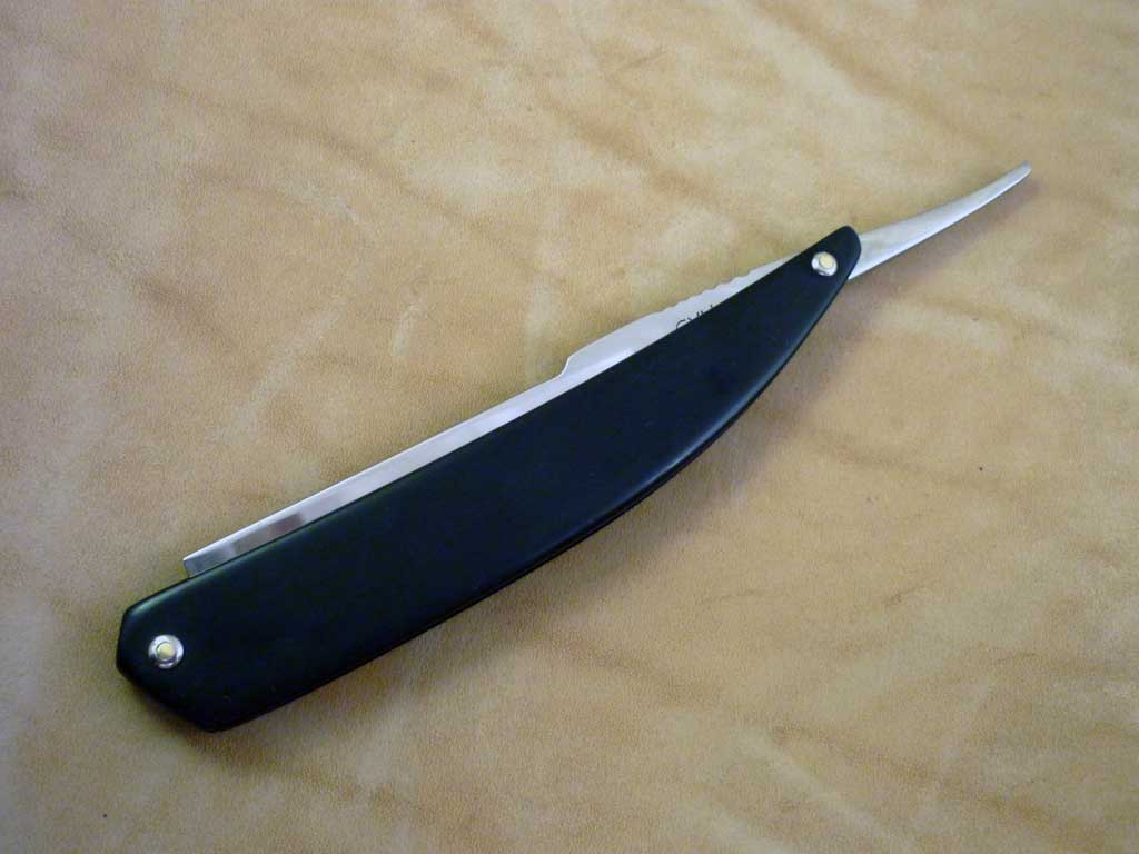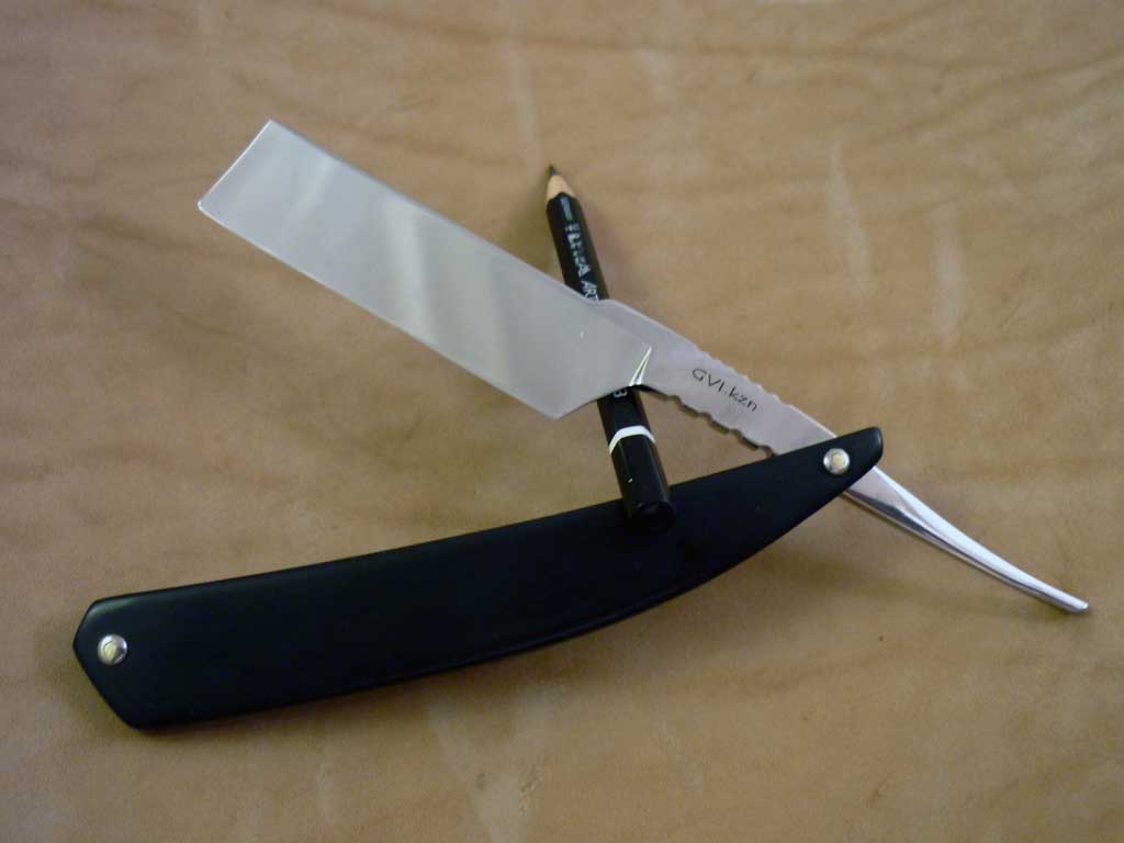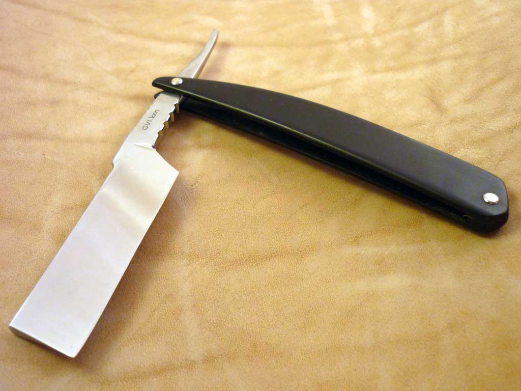 Сделал вот бритву, из старого оттермиченного напильника. бреет нормально, приятно.