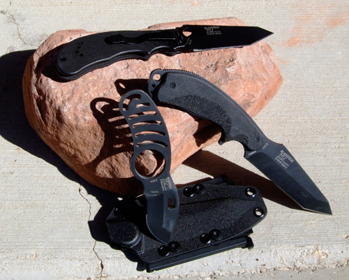 Tanto Surge полностью соответствует этому описанию. Странный на первый взгляд, он вызывает вопросы своей стилистикой, но стоит его только взять, как эти вопросы забываются. Нож просто отлично располагается в руке, причем это не только мое мнение, но и еще нескольких человек, чьи размеры ладони весьма отличаются от моих. Естественно, наиболее подходящие хваты для этого ножа, это диагональный и по-пистолетному, с упором торца рукояти в ладонь. Но это и неудивительно, форма клинка даже при беглом взгляде как-то не располагает к строганию деревяшек или нарезанию колбасы и помидоров полупрозрачными ломтиками. Стихия этого ножа – колющие и секущие удары, и с этим предназначением нож справляется очень неплохо. Обратный хват менее удобен «благодаря» выраженной подпальцевой выемке, но заметного дискомфорта, тем более в перчатках, не вызывает.