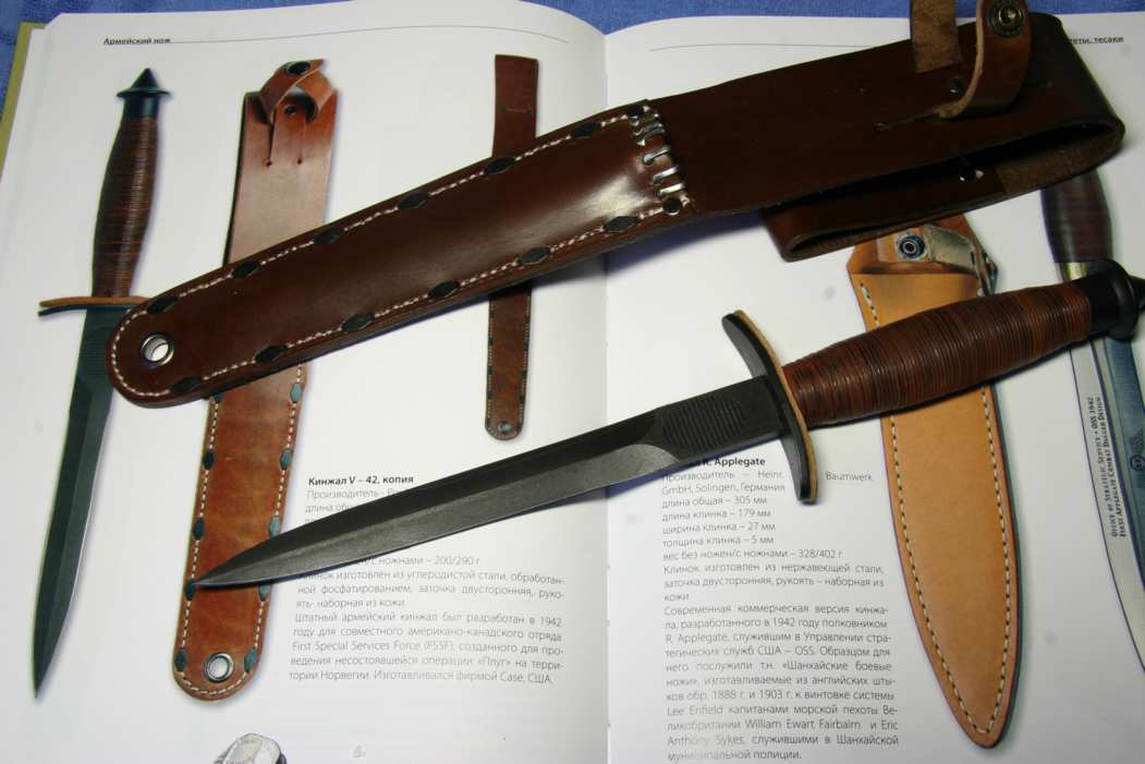 р48-да,Ужоснахи на ваших фото отменные...боевые ли они?Сомневаюсь.Это не касается "ближневосточного".Сейчас старенькие покажу-на первой ,третьей и четвертой фотке "Мститель 1870г" французский,дожил до ВВ2.На второй фотке- сделан американцами по мотивам (короче содран) с SASовского Файербан-Сакса.Имя его V-42 ,сделан специально для операции "Плуг".Ну хотели американцы в Норвегии высадиться 1942г.,но что-то не задалось.Страницы на фото из книги А.А.Мака...в ней есть и мои ножики,но больше современные.