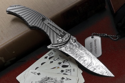 Сам дизайн титановой рукояти и красота рисунка дамаска на лезвии захватывают дух