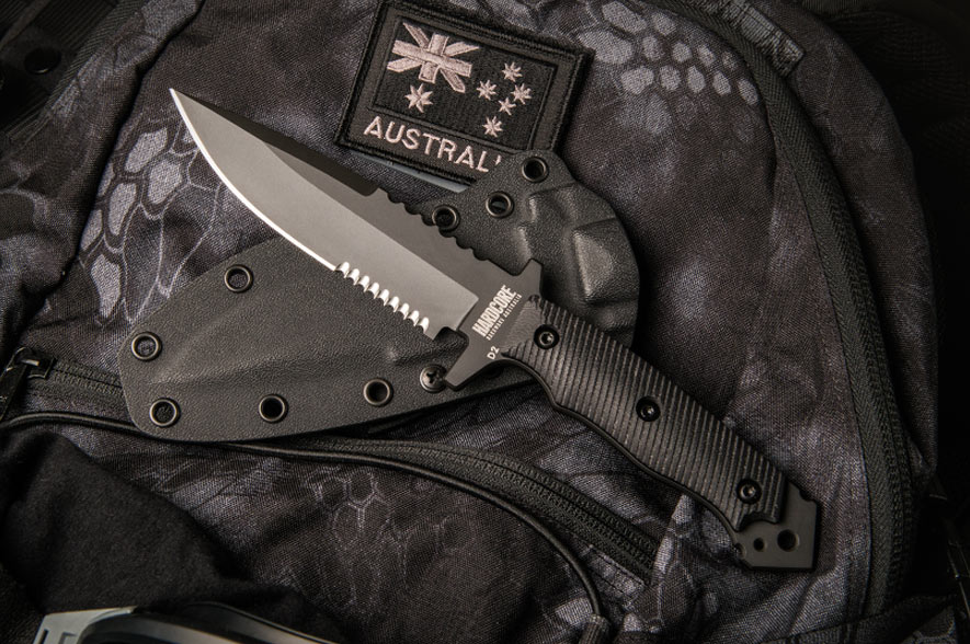 Сегодня австралийская компания Hardcore Hardware Australia, известная своими военно-тактическими ножами и топорами, официально стартовала продажи второго поколения ножей MFK-02 и MFK-04. По сравнению с прошлыми версиями, новинки незначительно изменились в габаритах и общем весе, рукоятка ножа приобрела более эргономичную форму, стандартные нейлоновые ножны заменены на формированные ножны из термопластикового материала Kydex.