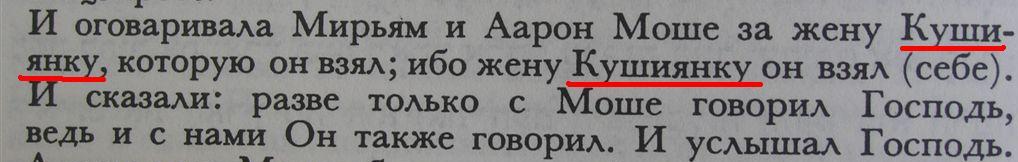 Я взял современное издание Торы , где та же женщина названа "кушиянкой" (см.фото 2). Тогда до меня дошло , что я ведь могу прочитать это слово на иврите (см. фото 3). Ба , да это же "кушит"- негритянка ! Из соображений политкоректности переводчики дали жене Моше завуалированное название , типа афроамериканки .