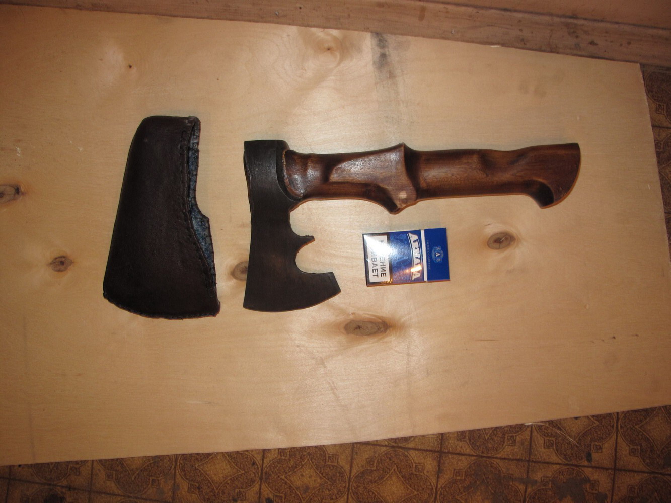 Топорище: Материал - морёный 50 лет илим. Пропитано эпоксидной смолой в ваккумной камере с сохранением текстуры дерева.