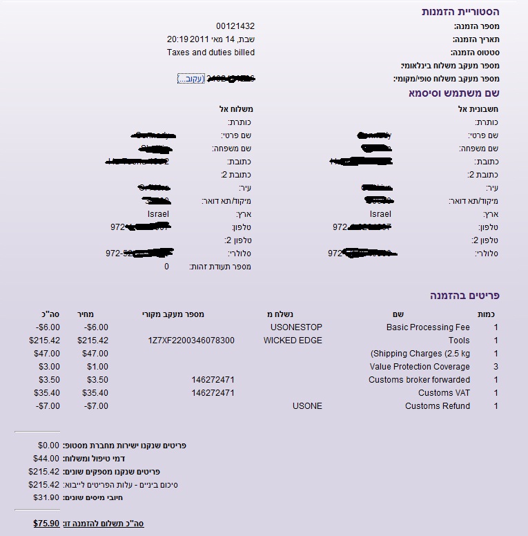 Я написал из своего опыта (что-то около 30 раз). Лично мне - звонят и говорят, что Вам пришёл негабаритный ножичек и нужно разрешение на ввоз. И после этого я шлю им все эти бумажки.manah по братски заточи мне руки я видел пару работ наших местных ребят и тоже так хочу плииииииииииз