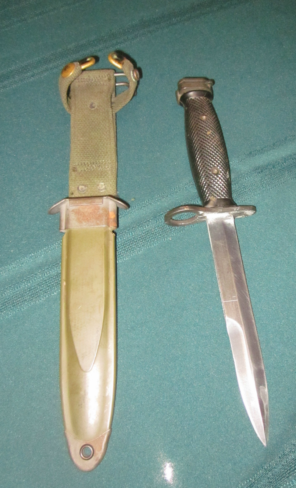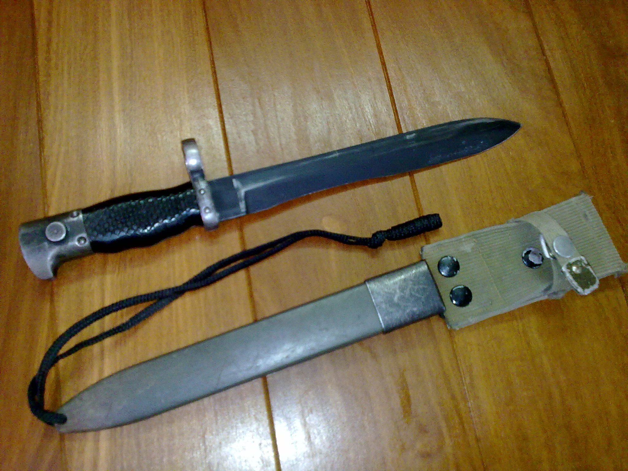 На продажу штык М7 образца 1964 года к автоматической винтовке М16 производитель BOC (Bauer Ordnance Corp.),укомплектован ножны модели М8А1.Состояние хорошее,клинок был аккуратно заточен без потери геометрии. Второй штык образца 1969 года штурмовой винтовке CETME образца 1958 года.Штык был снят с вооружения,не заточен,воронение потерто местами.Состояние хорошее.Каждый по 300шек или 500 за оба. тел 0542047471.