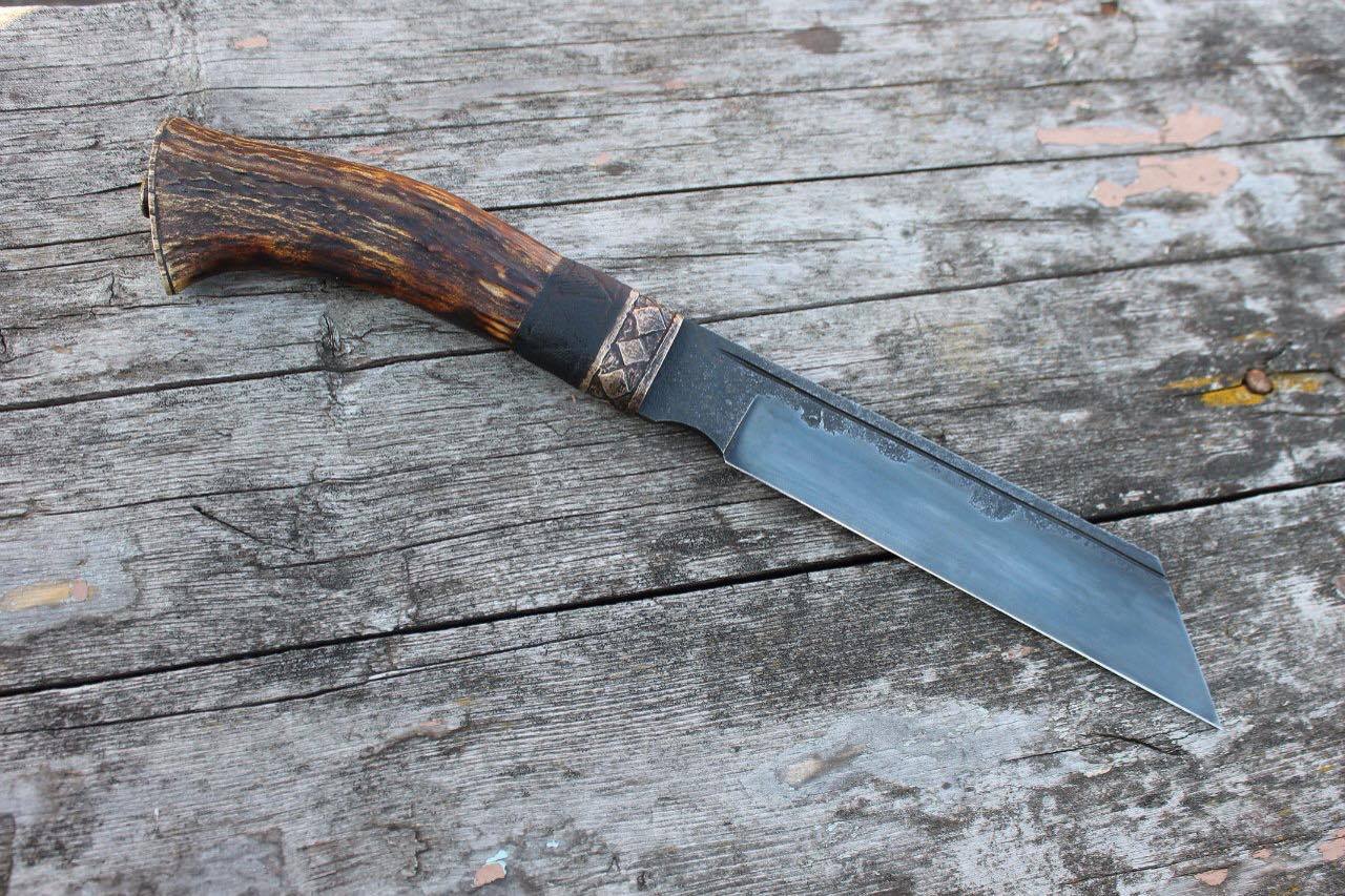 Рукоять-олений рог, орех, фибра, бронза, латунь. сквозной монтаж...