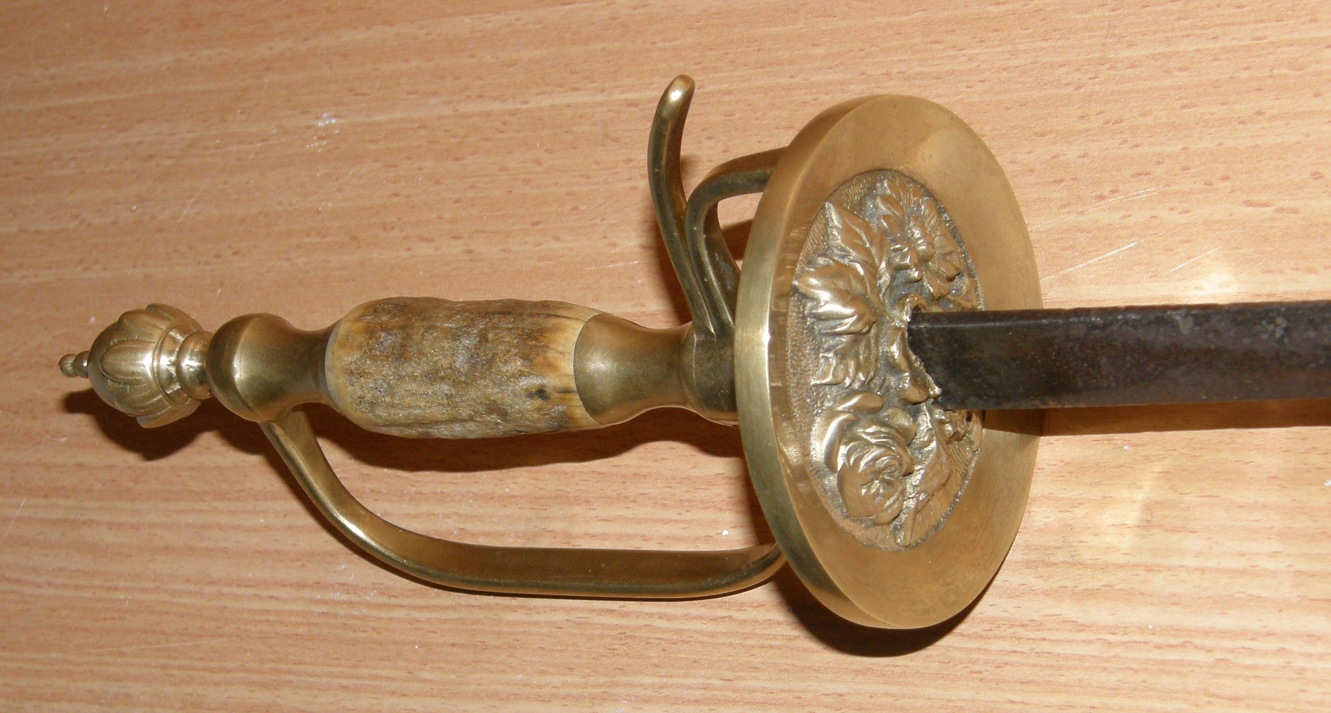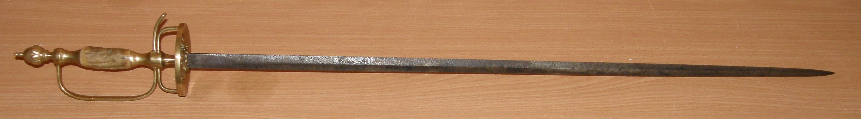 Клинок ромбического сечения европейской работы, рукоять-латунь, рог. 1200 шек.