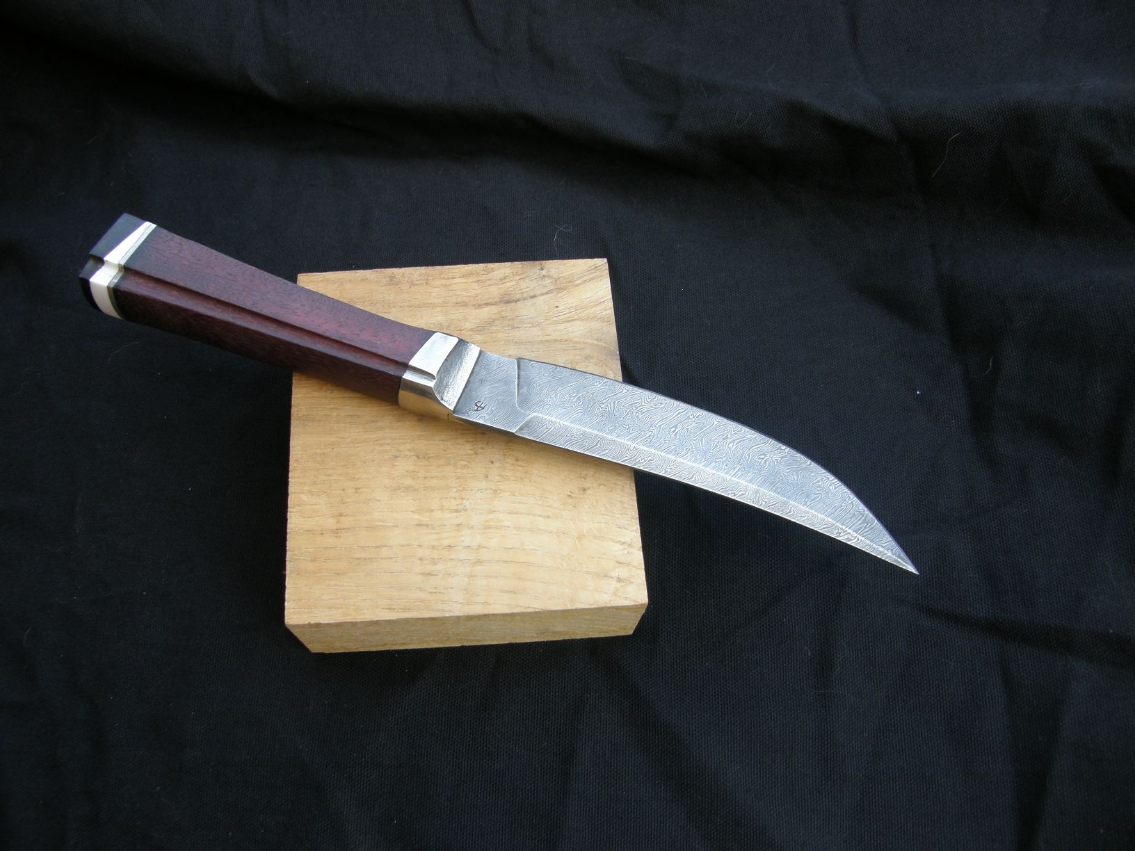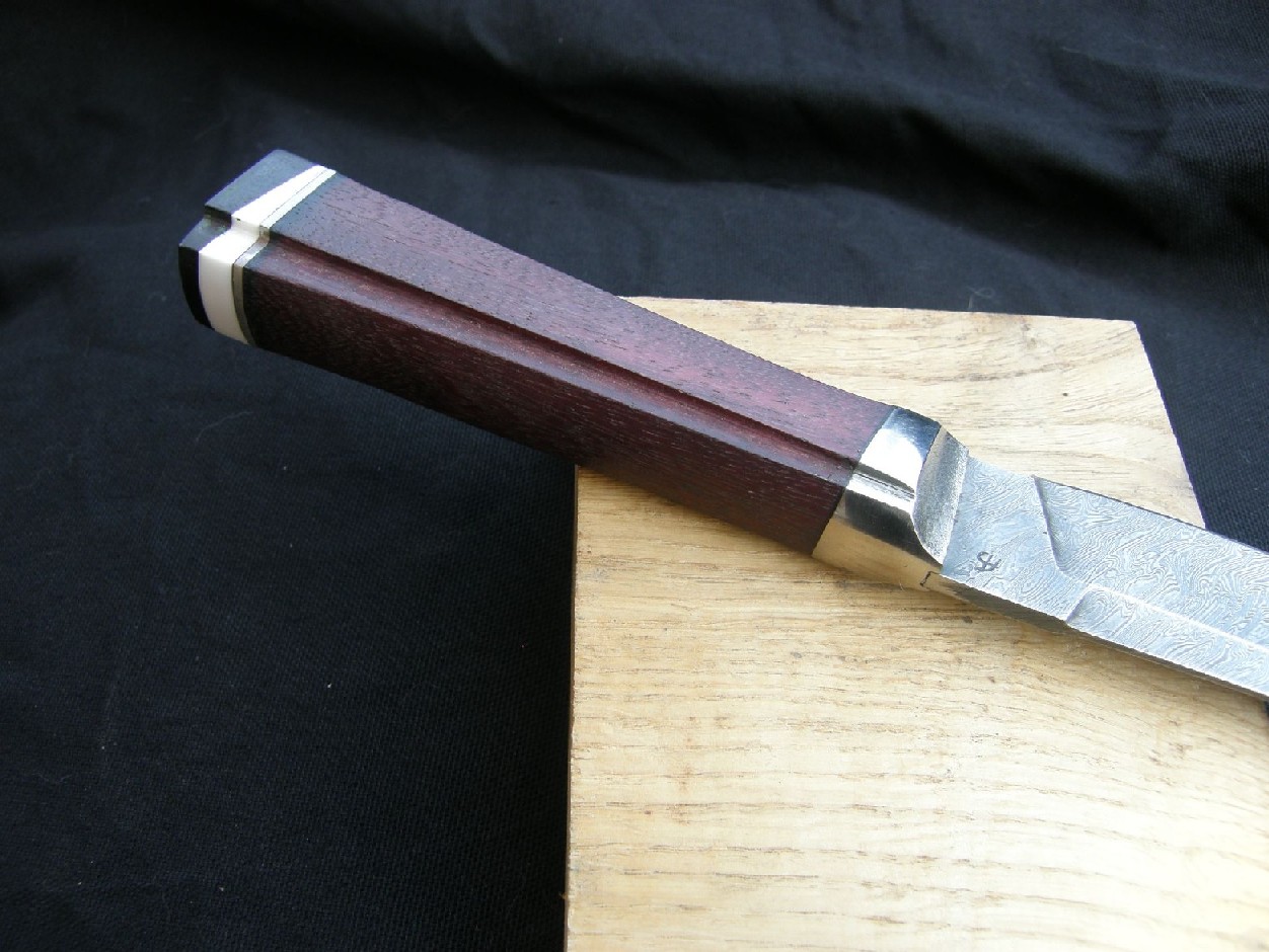 Клин дамасский Бирюкова. Рокоять амарант,кость ,эбен.