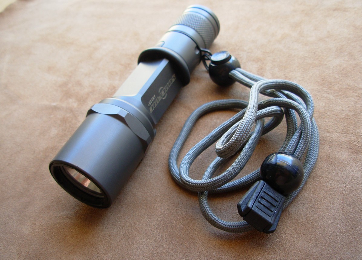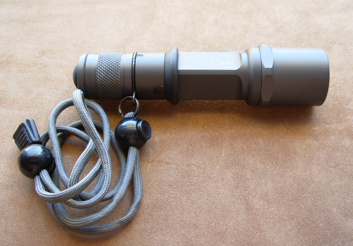 Работает от двух батареек 123А (фотобатарейки, продаются в любом фотосалоне), лампочка новая