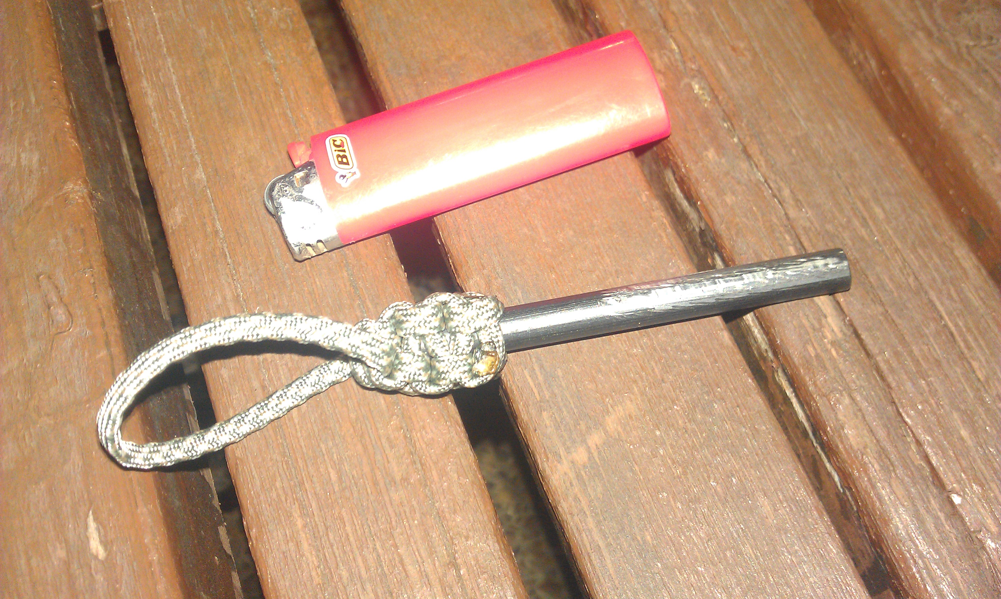 Ну проверка показала- нужна очень мелкая стружка,почти пыль или вата,салфетка,мох сухой... Упреть в землю или в любую твердую поверхность ,разжечь эту растопку,уж и потом живой огонь перенести на дрова-угли.От малого к большему.Все таки я не обещал,что с помощью огнива можно будет подпалить бревно или угли - растопка в виде ваты или стружка мелких сухих щепок нужна.