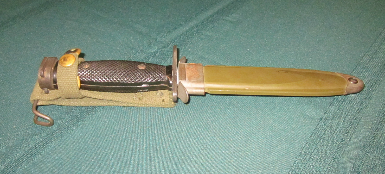 На продажу штык М7 образца 1964 года к автоматической винтовке М16 производитель BOC (Bauer Ordnance Corp.),укомплектован ножны модели М8А1.Состояние хорошее,клинок был аккуратно заточен без потери геометрии. Второй штык образца 1969 года штурмовой винтовке CETME образца 1958 года.Штык был снят с вооружения,не заточен,воронение потерто местами.Состояние хорошее.Каждый по 300шек или 500 за оба. тел 0542047471.