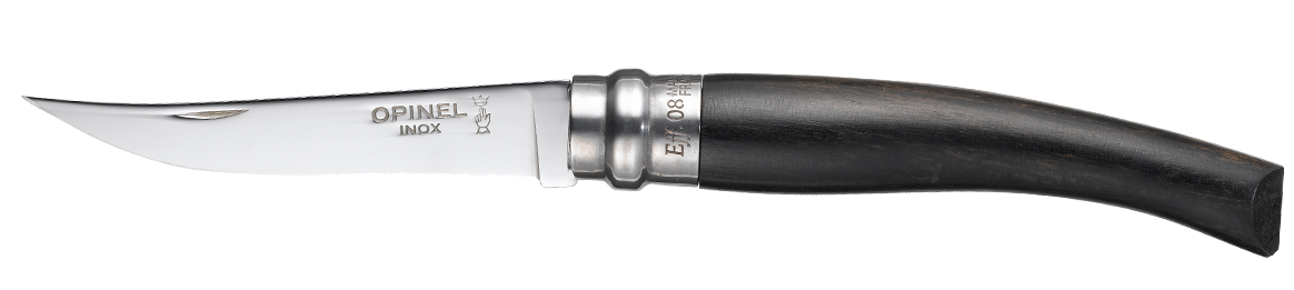 Opinel No8 is the most versatile size in the ever growing line of Opinel folding knives. This knife is small enough to be used as a pocket knife and it's 3 1/4' blade prevent it to be considered a weapon in most states (check with your state).