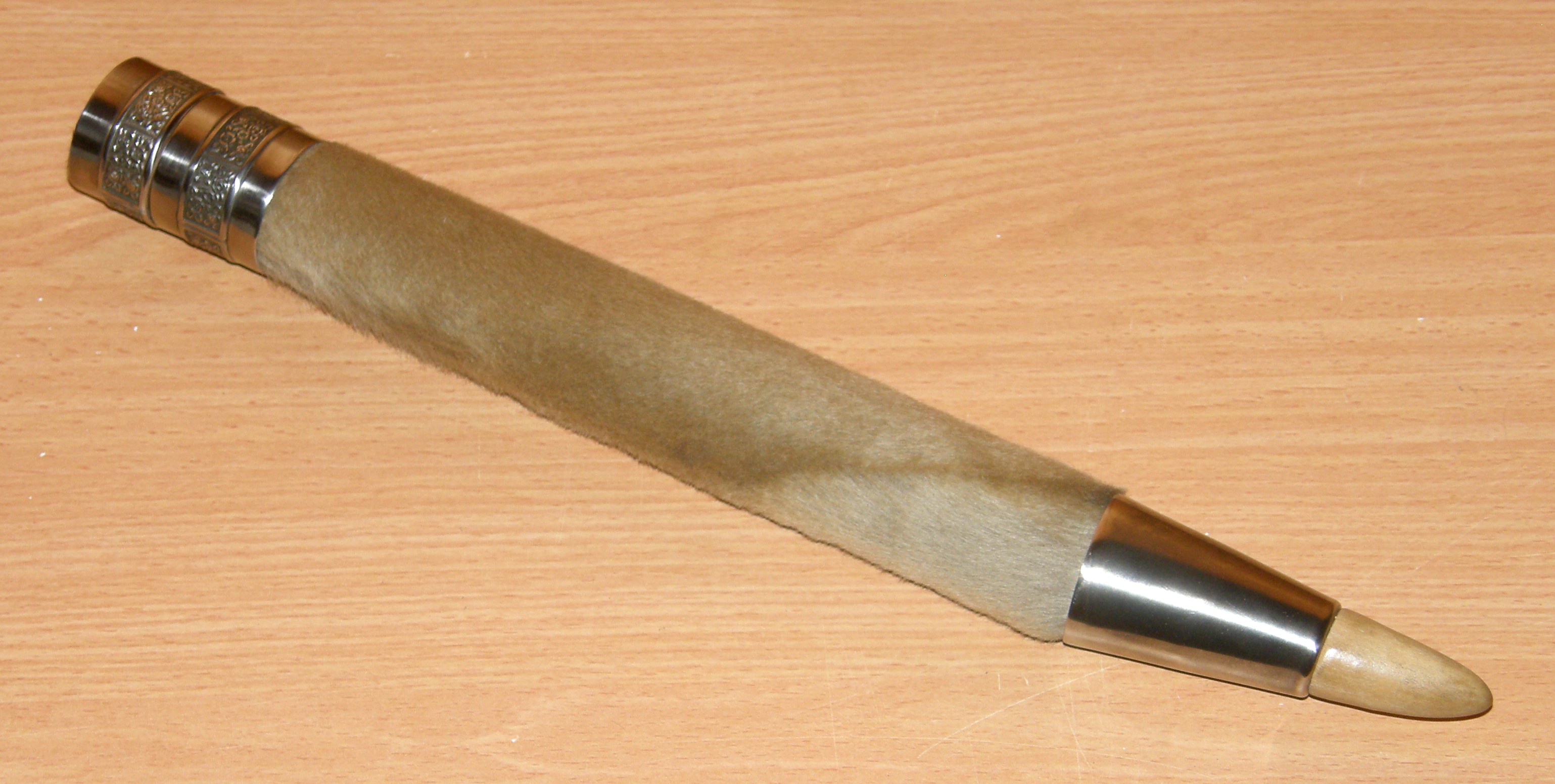 Ножны-латунная трубка, нержавейка, натуральный мех, рог лося.