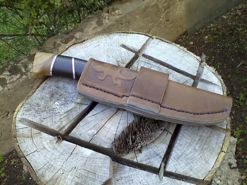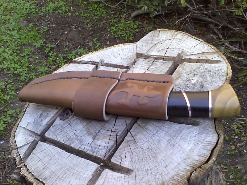 Ножны- кожа 5 мм коричневого цвета, тиснение