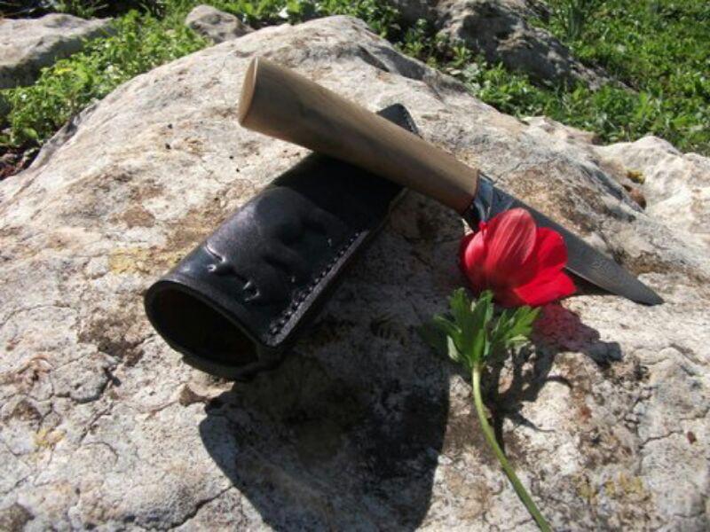 Рукоять- Непальская олива. красная фибра и гарда с нержавеющей стали