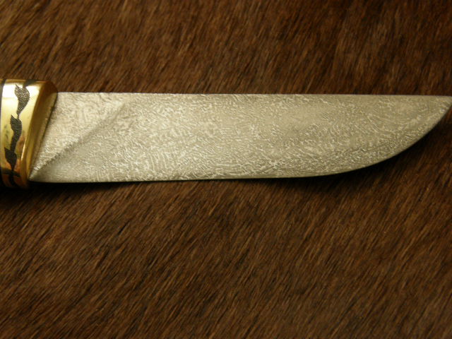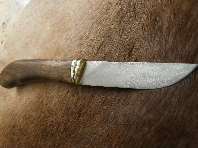 Рукоять не пропорциональна лезвию , форма скорее подходит для зонтика . Есть еще над чем работать . А вот рисунок тигельной стали все лучше и лучше , поздравляю .