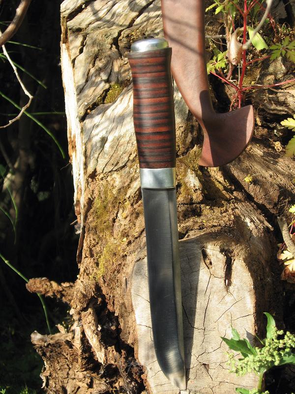 Финка симпатичная! Рукоять ,наборная кожа? Чем-то её пропитывал?