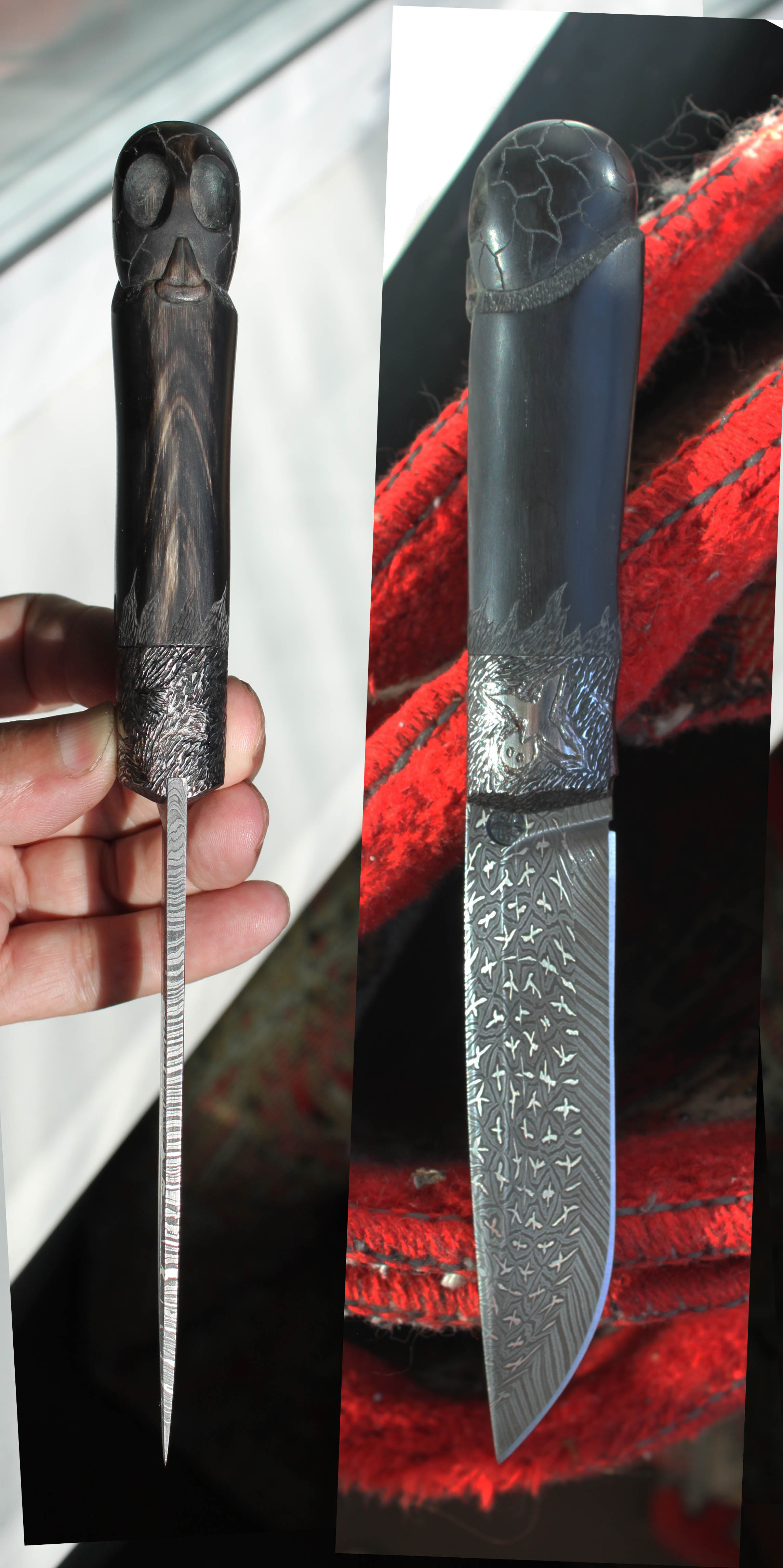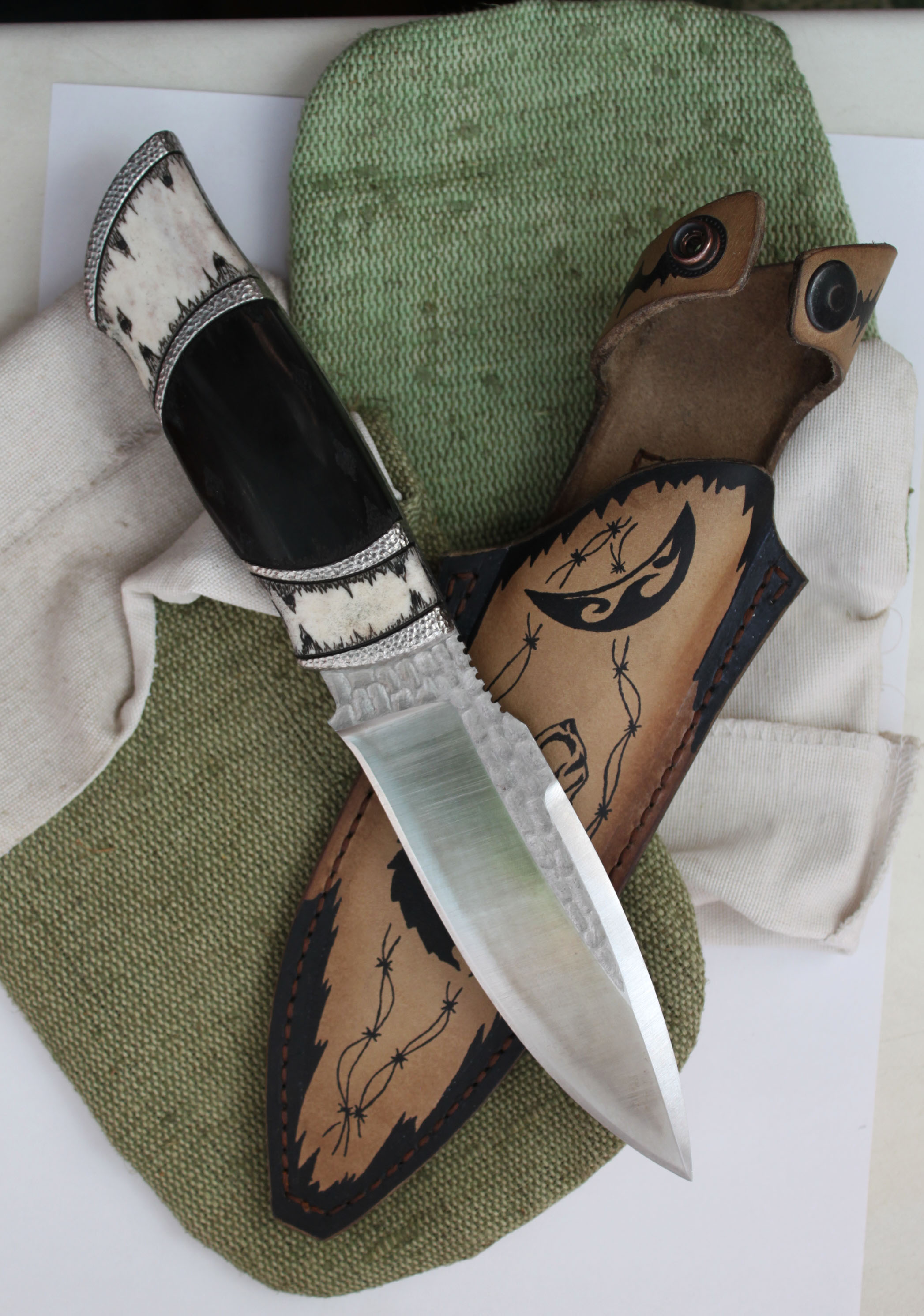 Сталь S35VN, нержавейка, рог буйвола, рог изюбря, кевлар, кожа.