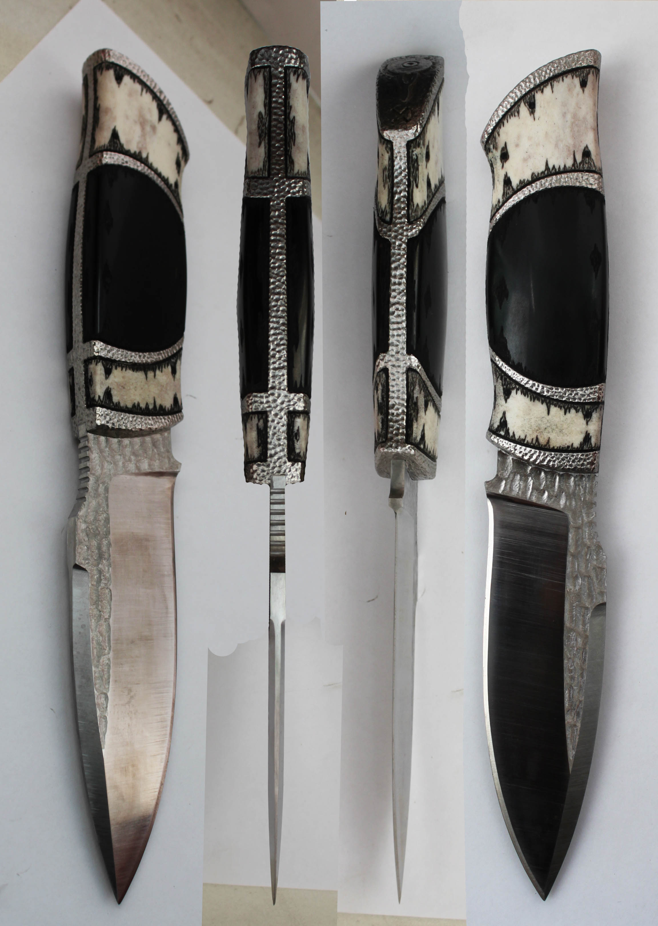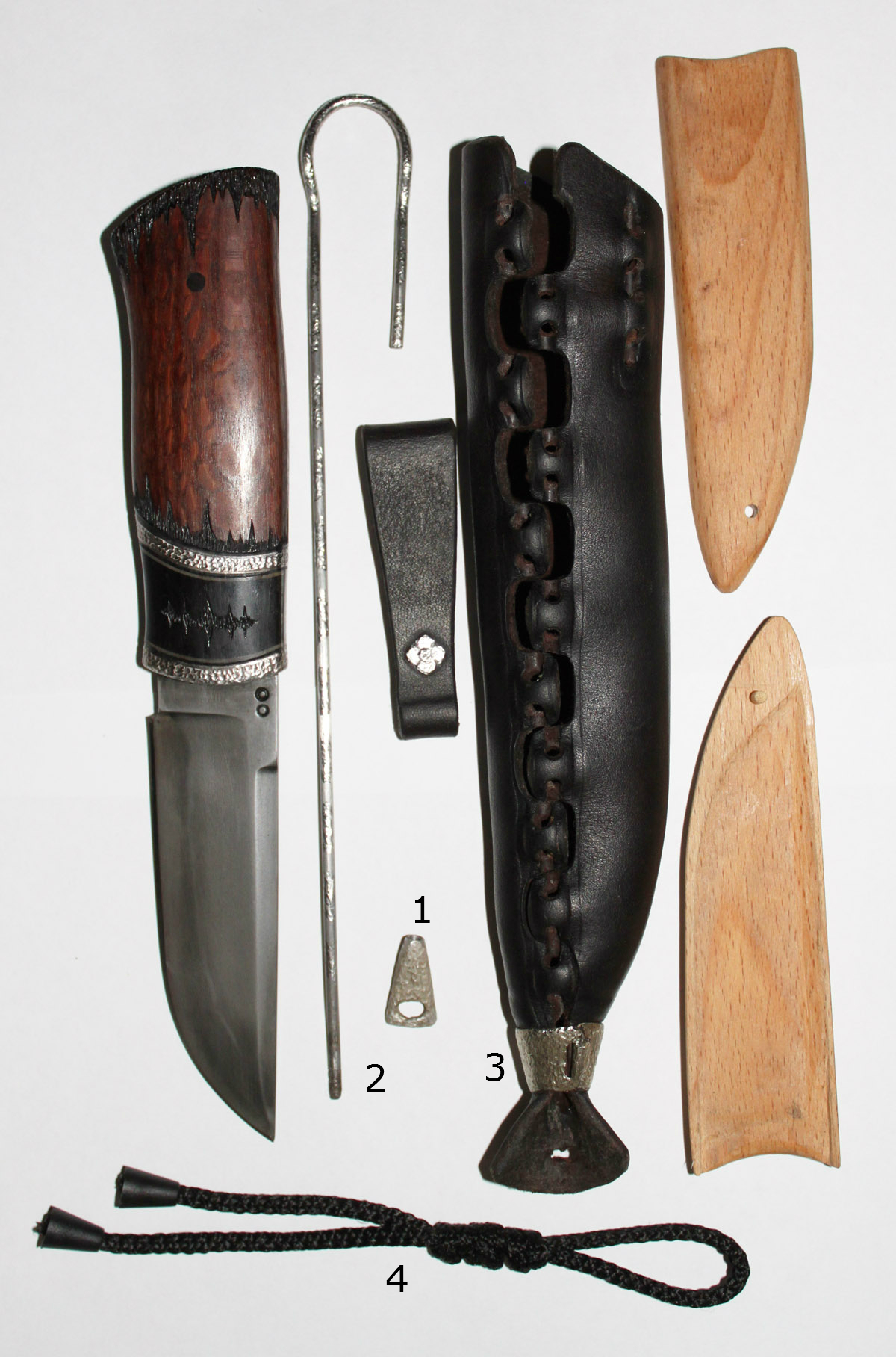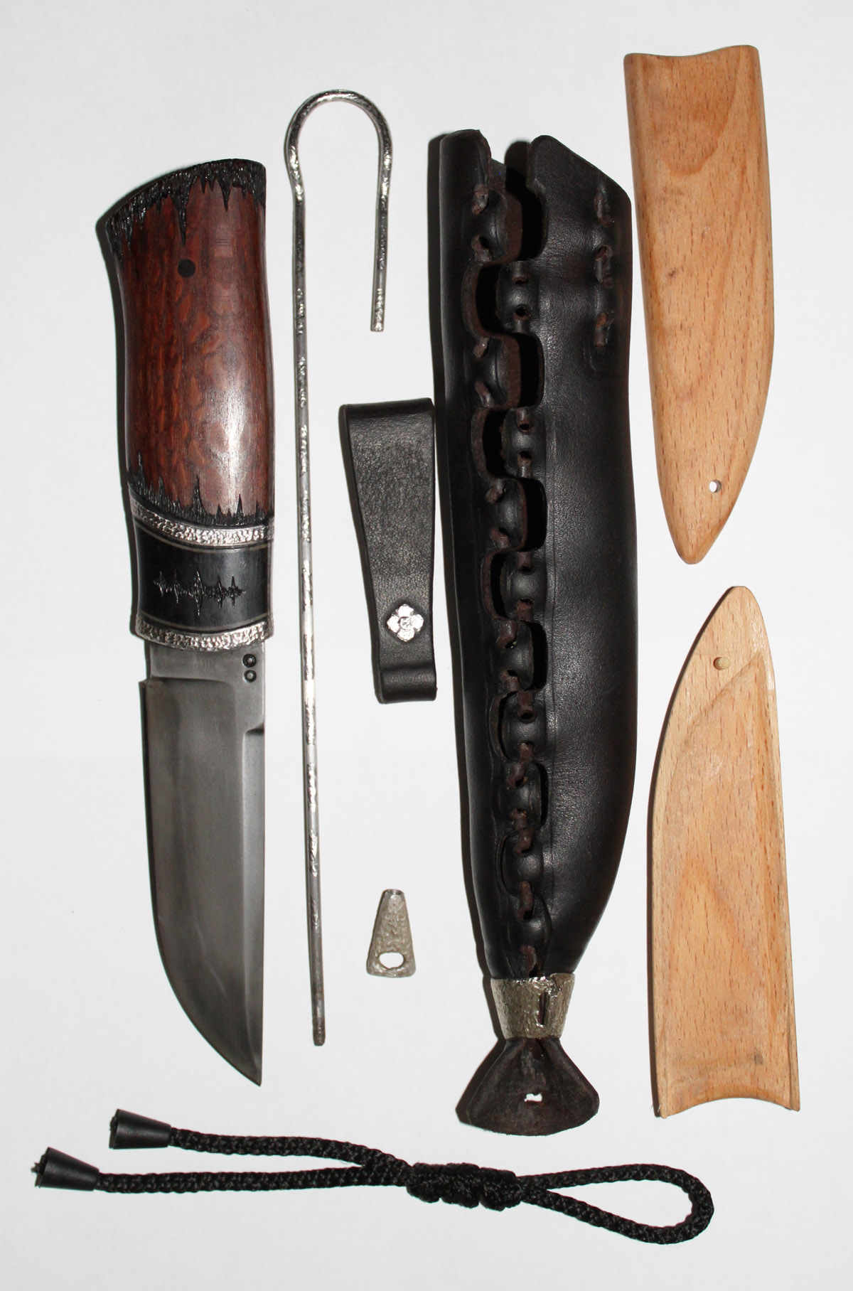 рог буйвола, нержавейка, венге, мельхиор, дюраль, кожа.