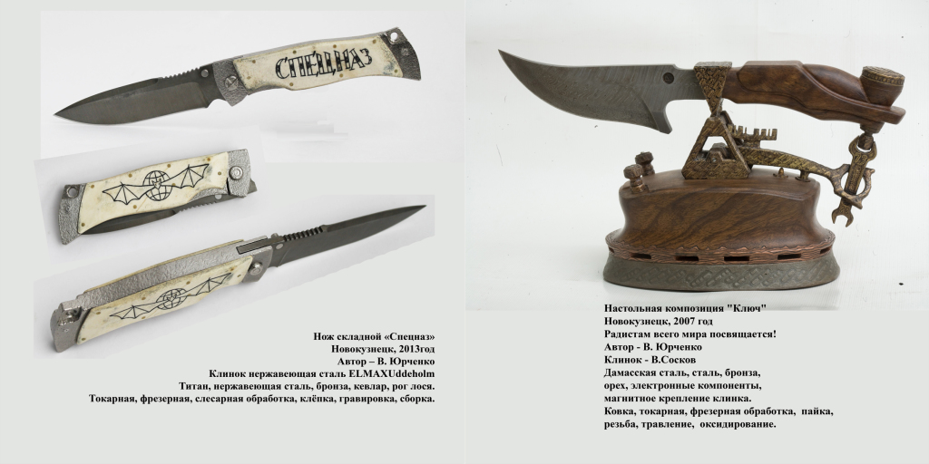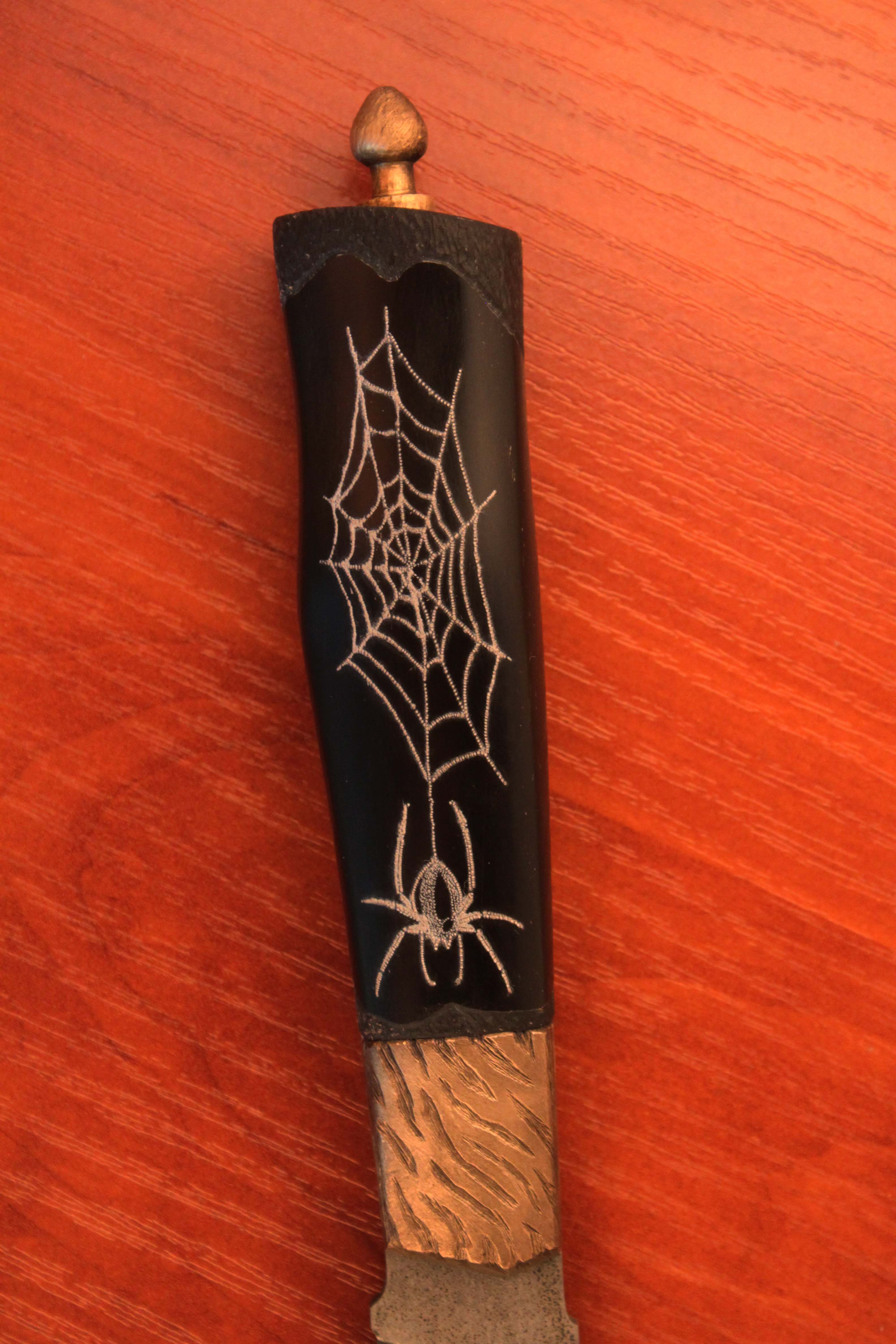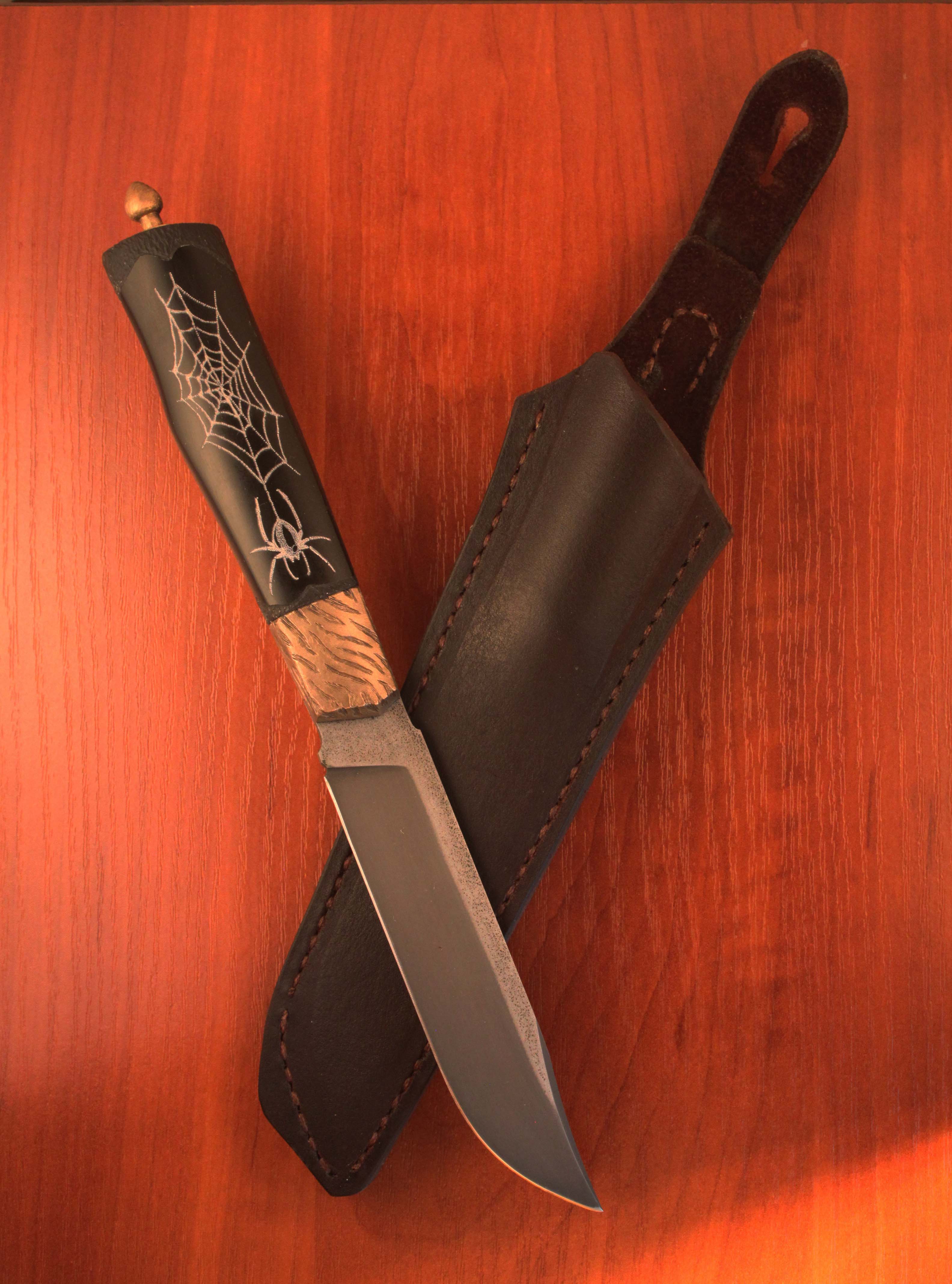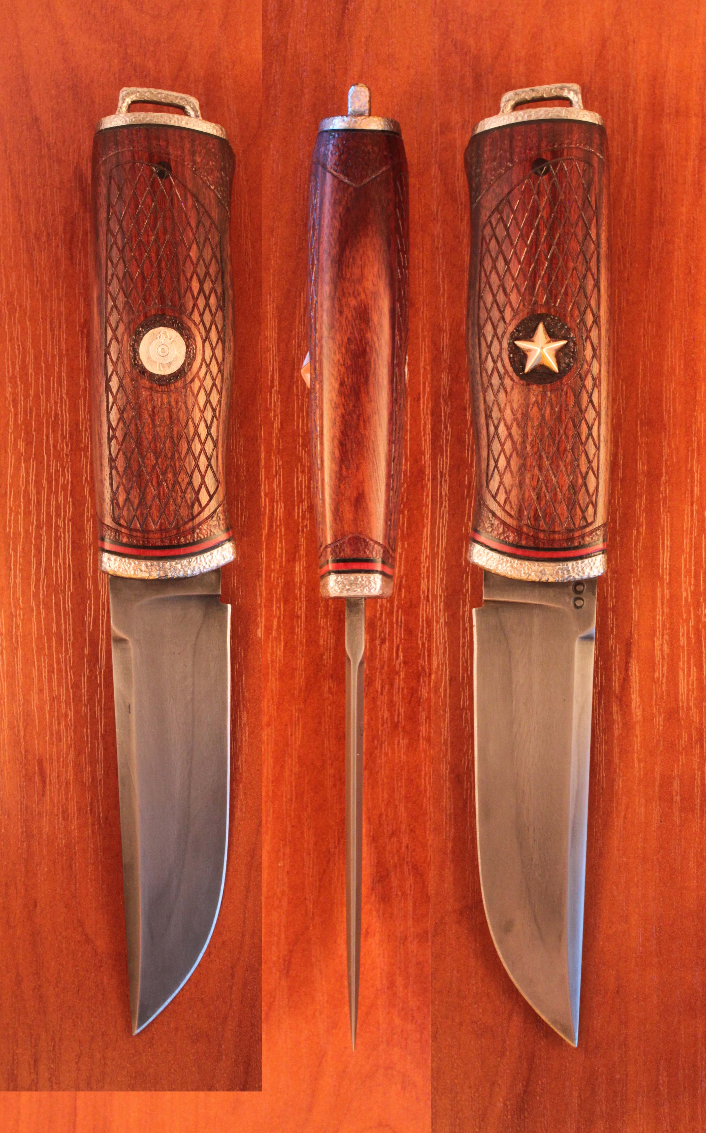 рог буйвола, нержавейка, венге, мельхиор, дюраль, кожа.