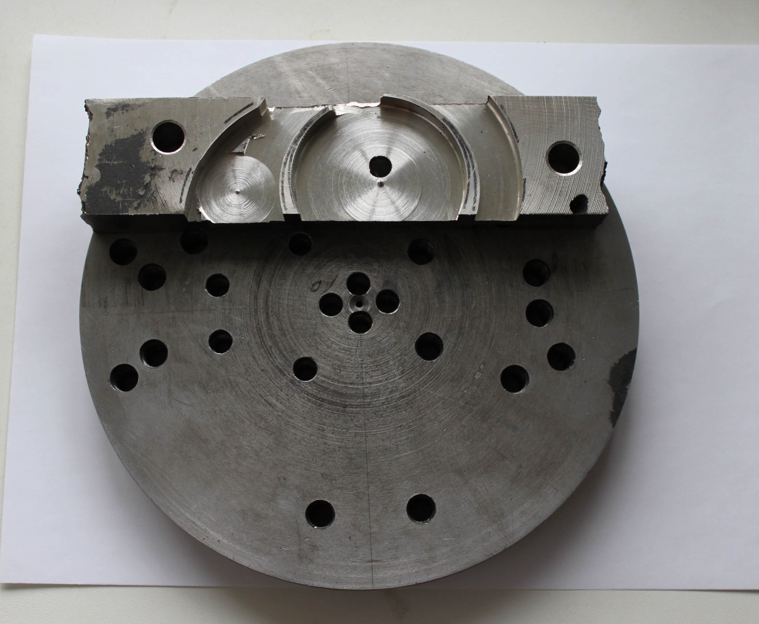 Рукоятка выполнена из нержавейки на токарном станке, при помощи специальных приспособлений.