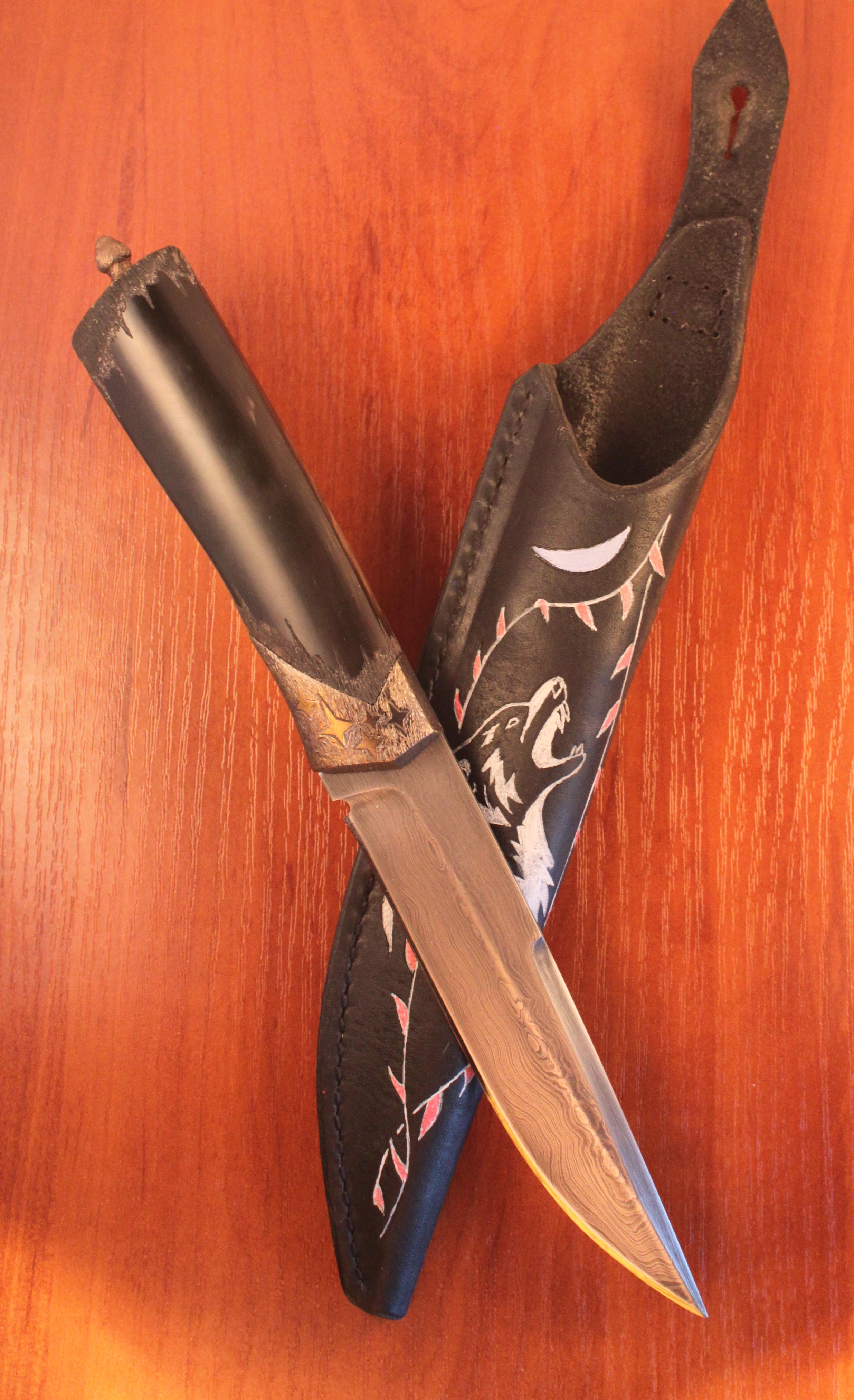 Сталь М390, рог буйвола, нержавейка, бронза, кожа.