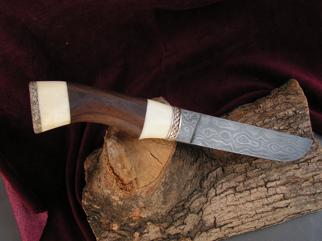 рукоять 110 американский орех, цевка, серебро, эпоксидка+стружка... Первая проба интересующей меня технологии. С удовольствием отвечу на все вопросы.