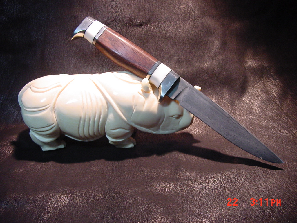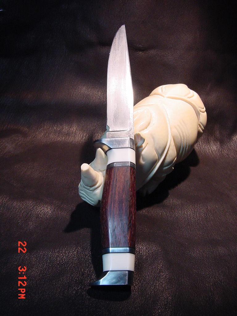 Привет Всем! Оцените новый ножик. Получился родной брат "Осеннему". Сделан из напильника, отпущен слесарен и закалён . Нержавейка -больстер и тыльник.Акриловая мойка-это белые вставки, и дерево палисандр(наверно). Не полирован. Остановилься на 2000 бумаге. Но полирну попозже. Просто нетерпелось похвастать. Ага -ещё травление ХЖ.