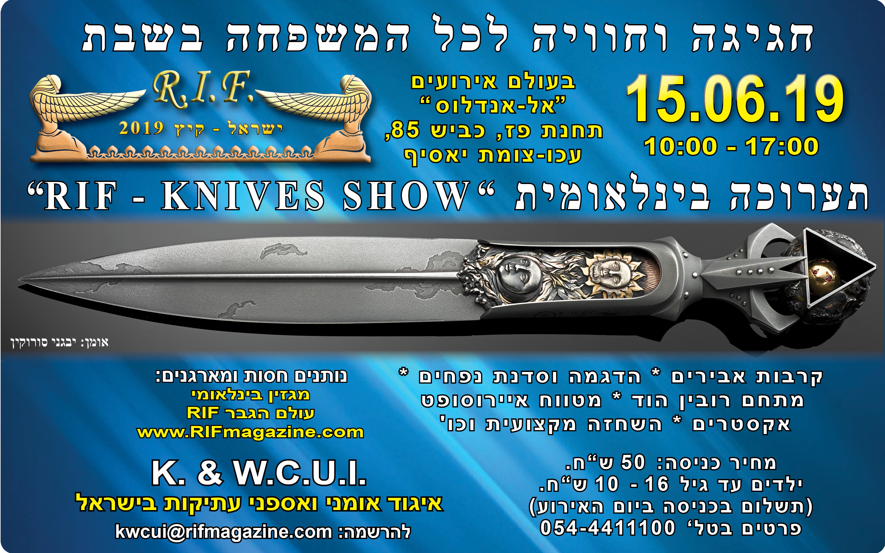 15 июня 2019 года в зале торжеств " Андалус" рядом с г.Акко, квиш 85 Акко – цомет Ясиф , запрвка ПАЗ , состоится выставка-продажа холодного оружия «R.I.F. – Лето 2019».