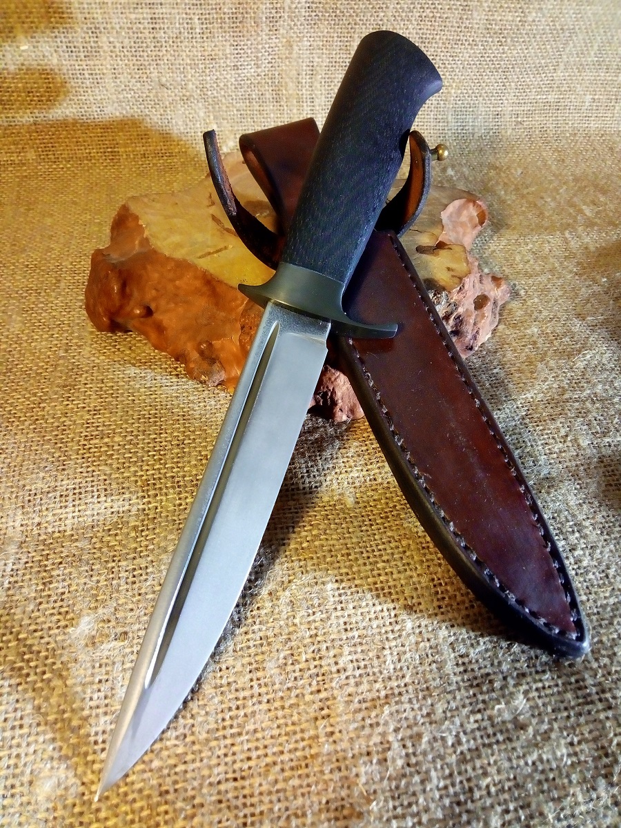 - По большей части всё придумываю сам. А вообще, если рассуждать о личном видении, то в ноже, на мой взгляд, всё вместе должно сочетаться: в первую очередь нож должен быть красивый и удобный в работе. То есть - функциональность и четкость линий как произведение искусства. Для меня в первую очередь произведение искусства - это чёткие лаконичные ножи, не перегруженные камнями и золотом, а те в которых маленькая изюминка делает его неповторимым. Пэтому у меня шаблонов при создании как таковых нет, есть любимые формы, любимый стиль, которого стараюсь придерживаться. Очень люблю классические финки, правда никогда не делаю их под заказ, они появляются спонтанно и неожиданно, они для души, если можно так сказать… С недавних пор очень понравилось делать поварские ножи