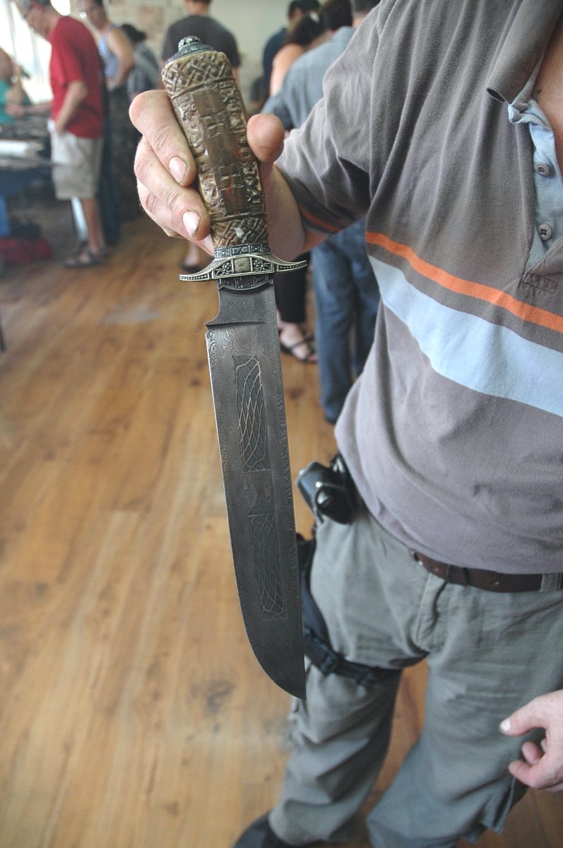 А перед этим собрались мастеровые где-то в глубинке да давай думу думать, типа, а не вдарить ли нам по народному рукоделию? В смысле – ножеделанию. И вдарили. Теремок такой неплохой нашли да в аренду его сняли. Правда, жарковато было в тех хоромах, и жарковато не по-деццки. Но мужики не запечалились, начали собираться. Заодно причесались, побрились, рубашки новые надели. Девицы-супружницы маникюру навели поболе, да за мужьями увязались, типа, знаем мы ваши выставки.