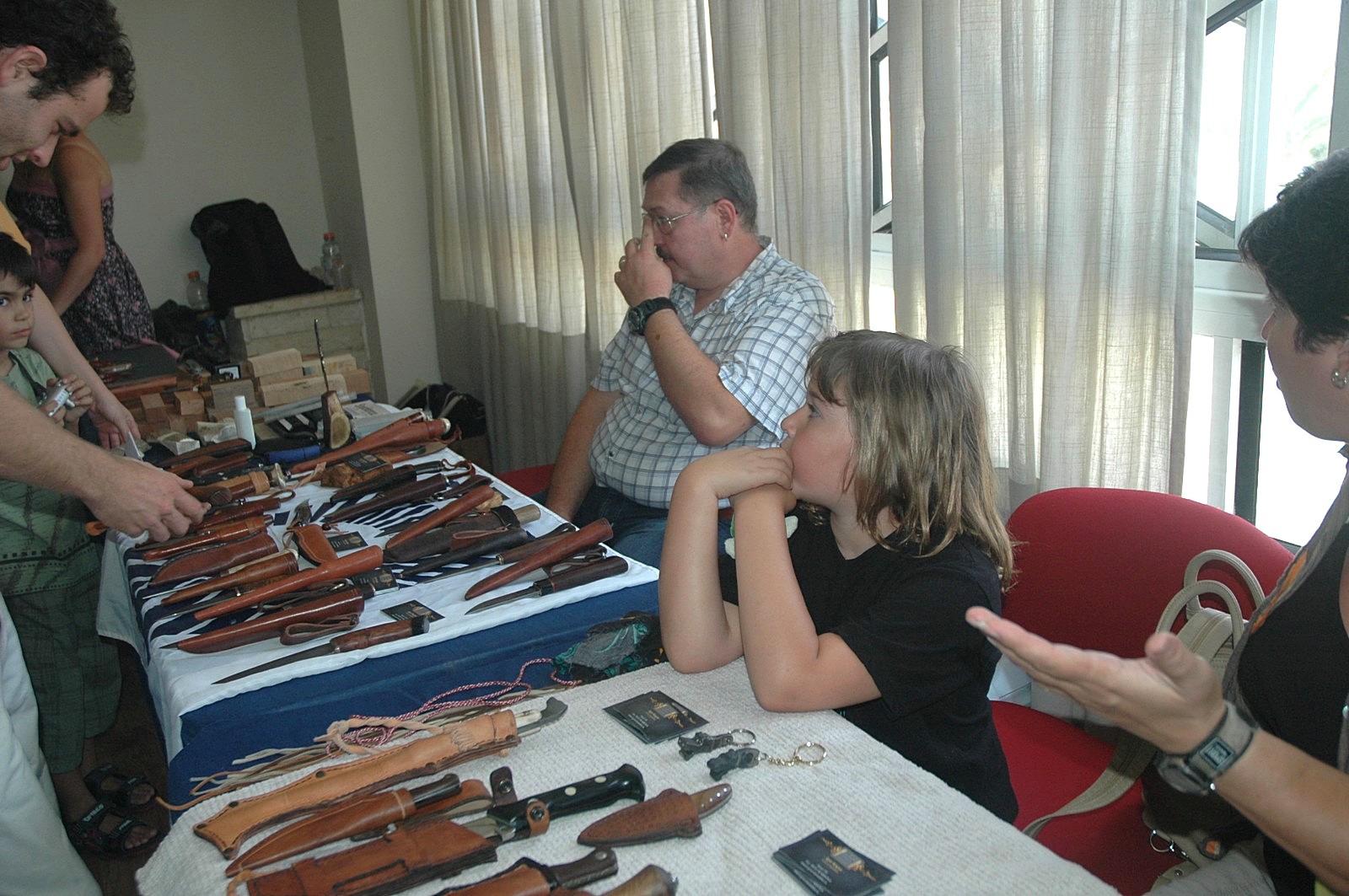 Девицы-супружницы да детишки тоже не отставали, тусуясь рядышком да за товаром приглядывали. Ну, и между собой секретничали, обсуждая последние новинки отечественного и зарубежного ножестроения. Наверное. А может, и другое чего удумали…