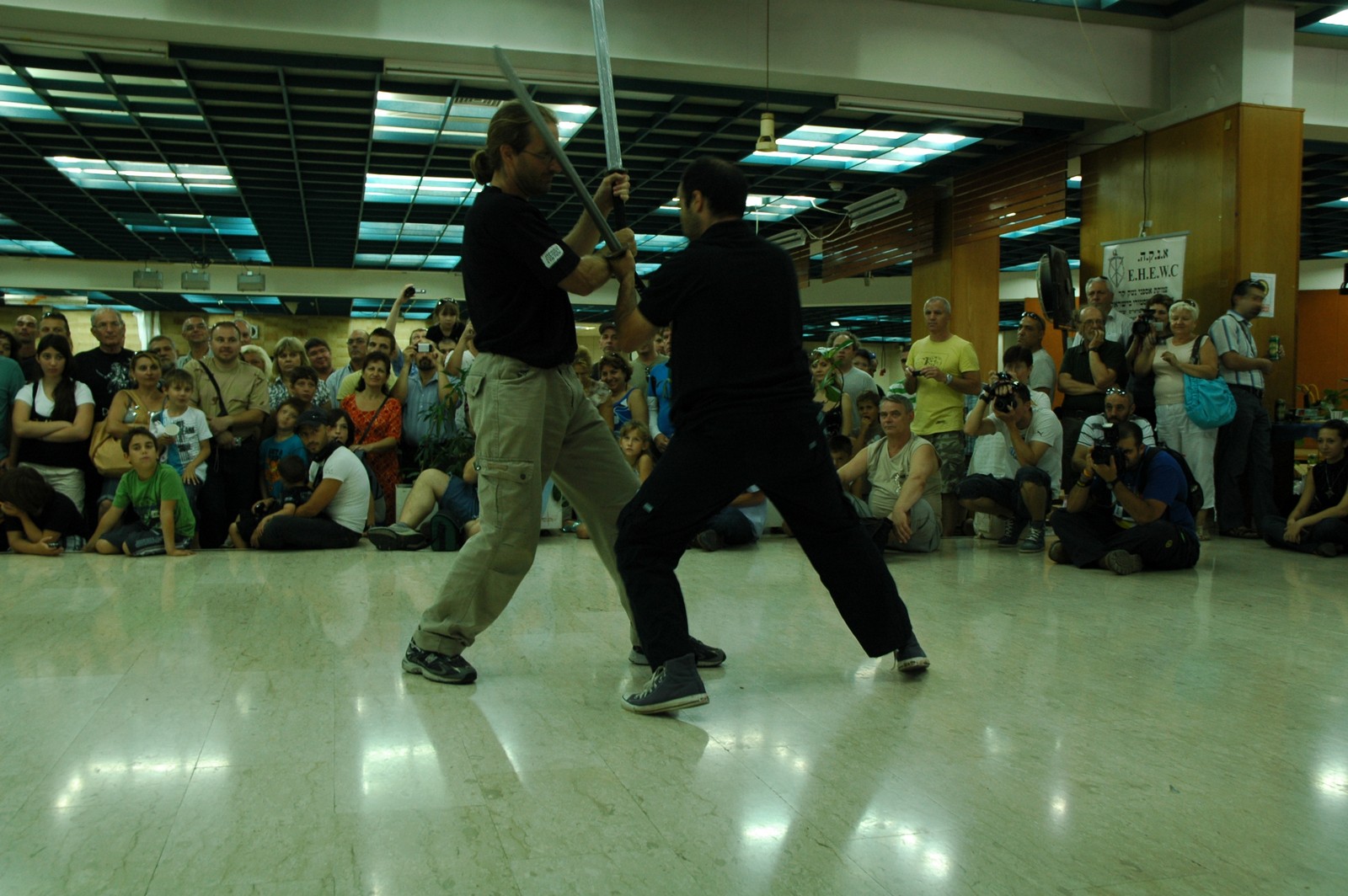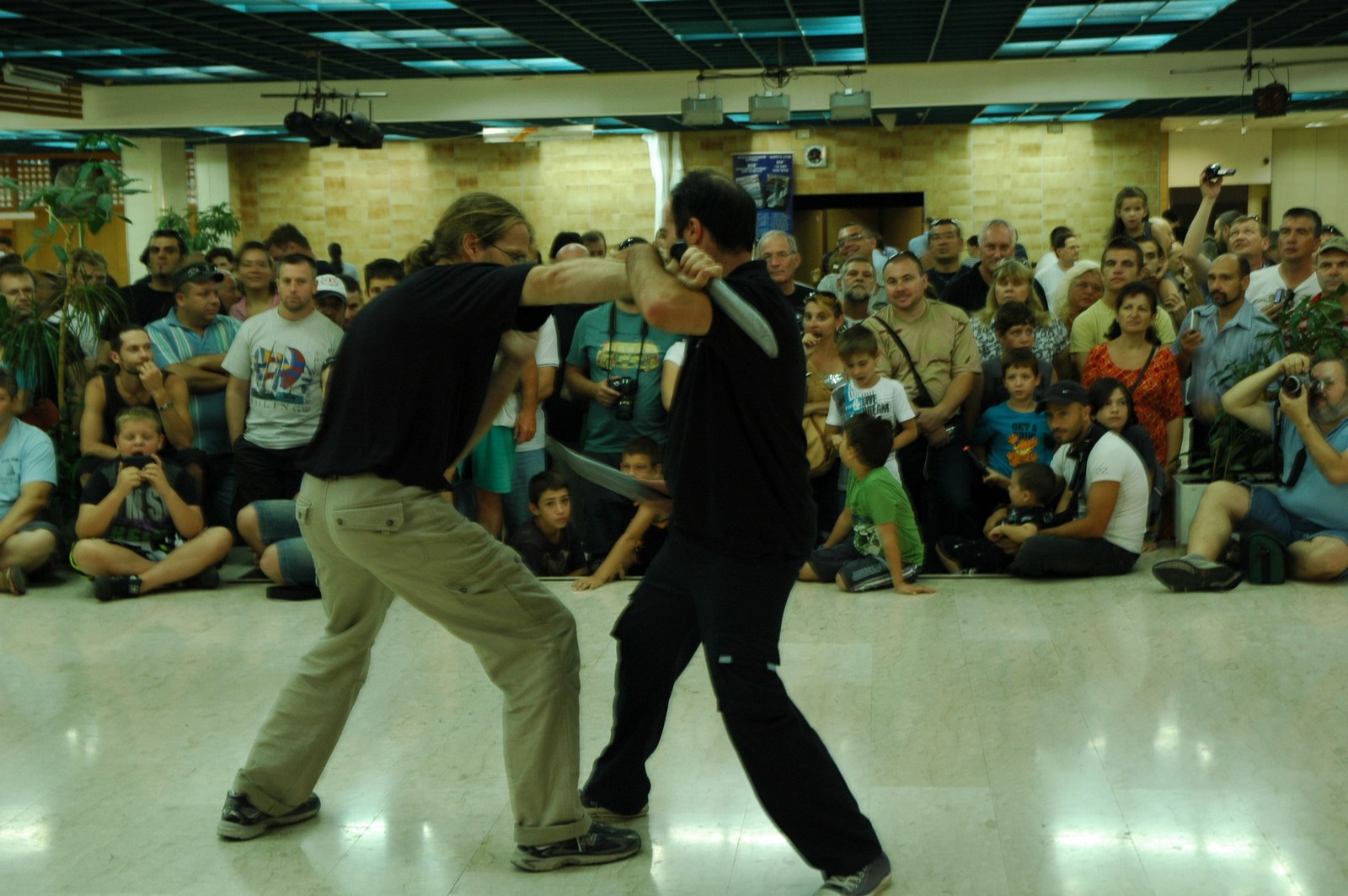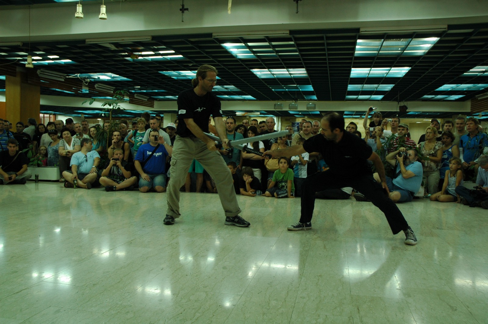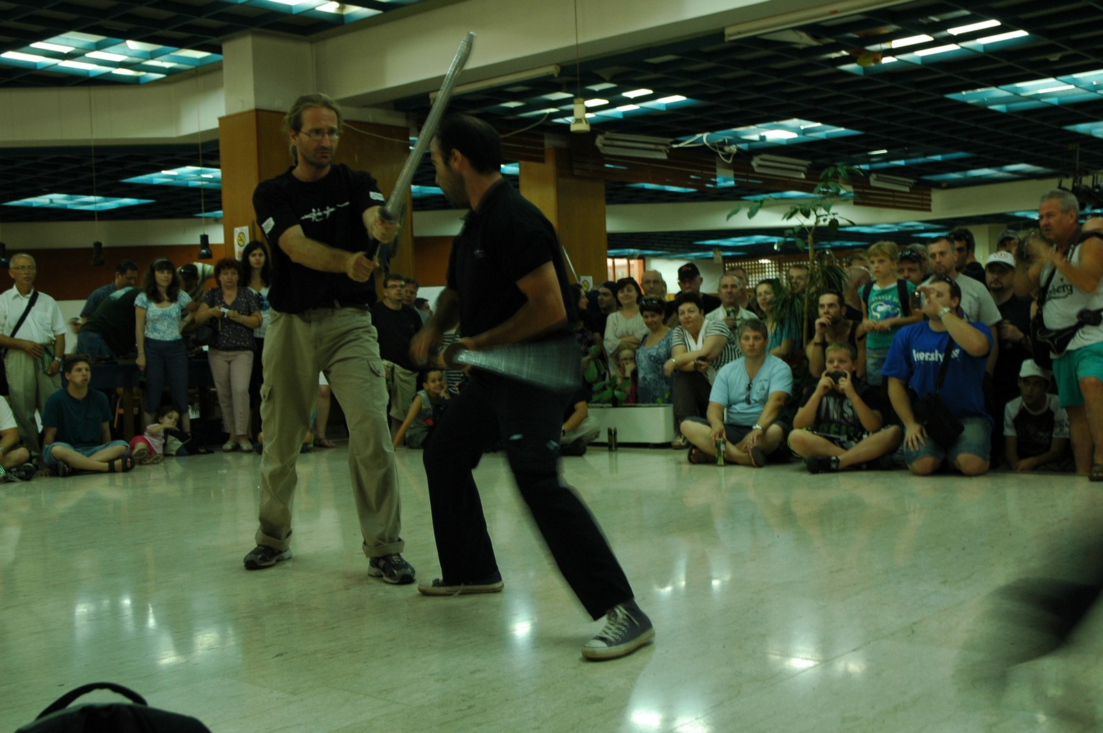 Приходил еще Джон Эскудеро, преподаватель школы филлипинских боевых искусств. Пришел с ребятами-учениками, на которых бодро показывал приемы владения различными пердеметами. Ребята особо не сопротивлялись, ибо Джон был быстр, бесстрашен, беспощаден и вооружен, как положено филлипинскому воину :D Такова селяви, как говорят гордые ребята из Австралии ;)