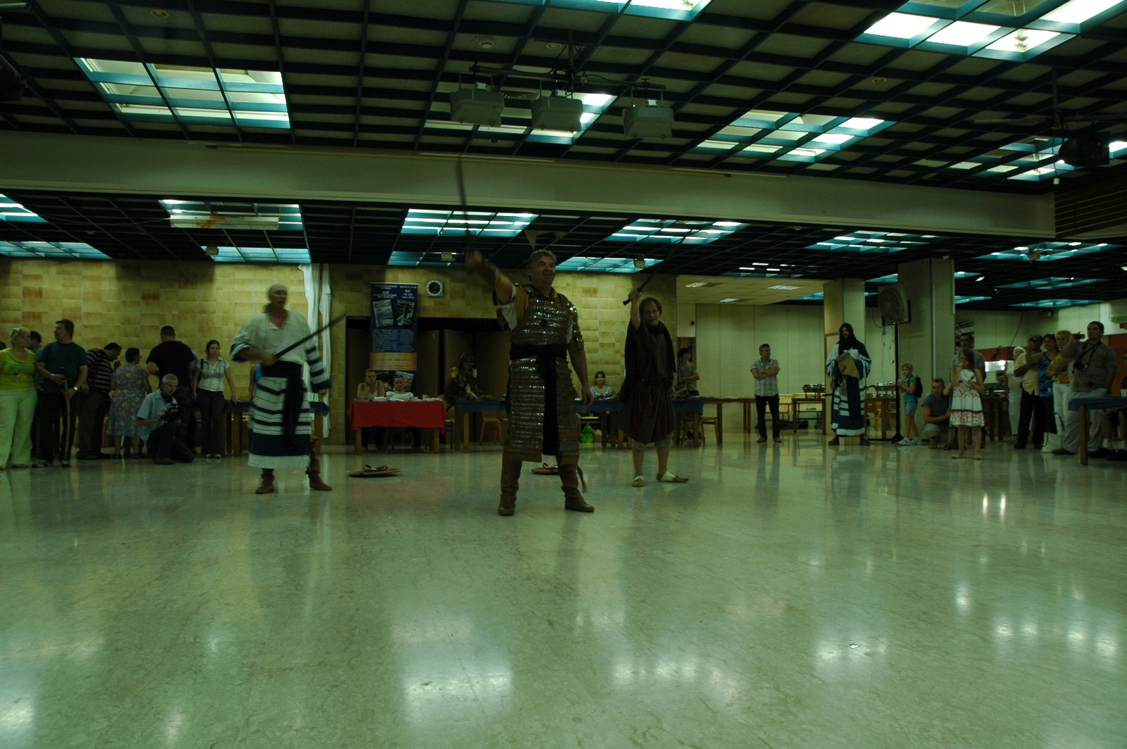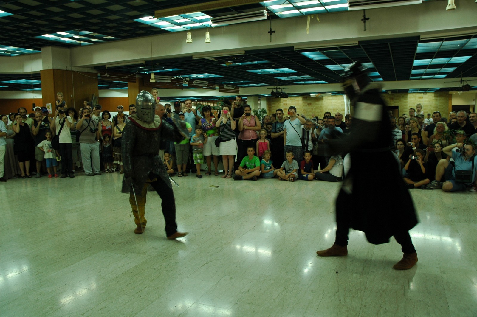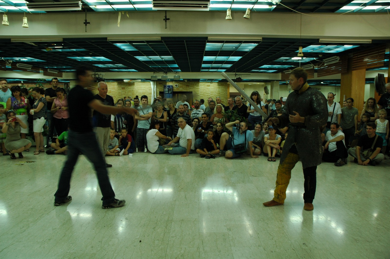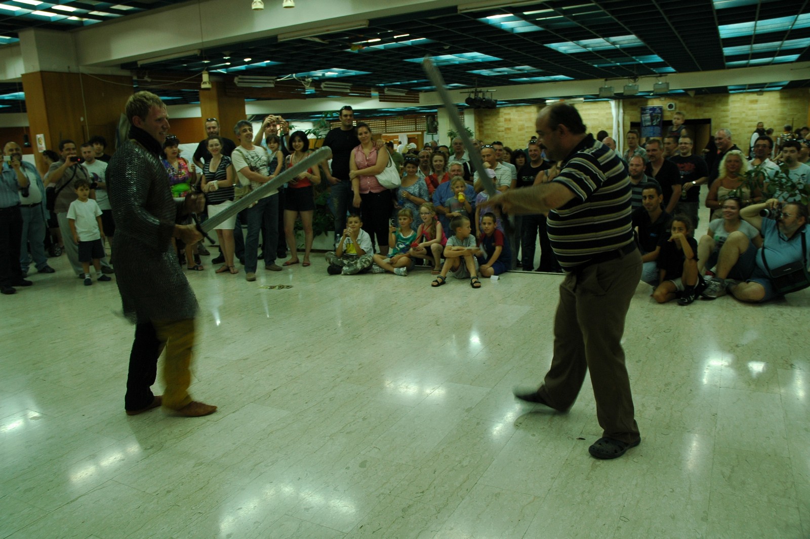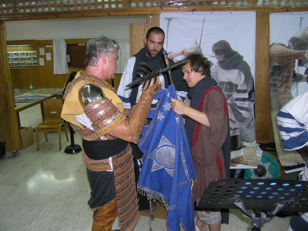 А потом пришли ребята из Jerusalem Living History Club. Пришли не просто так, а со своим снаряжением: кольчуга, латы, мечи, шлемы, щиты... К слову, ребята занимаются реконструкцией жизни воинов средневековья, отсюда и амуниция, которая выглядела довольно внушительно.