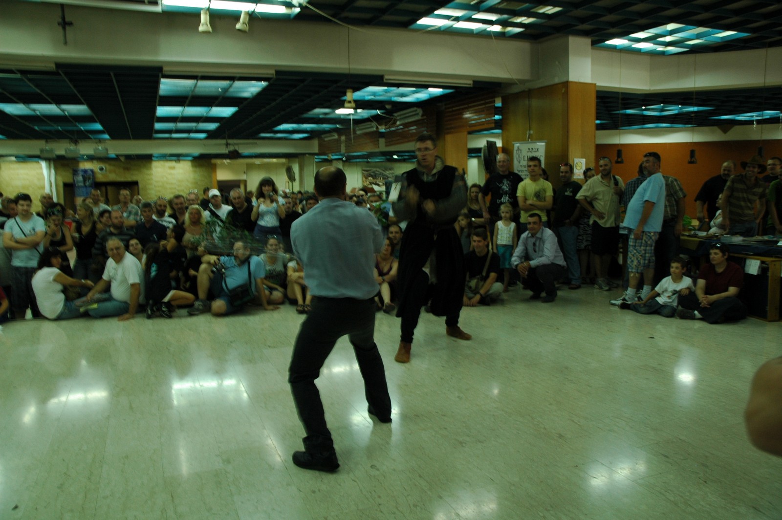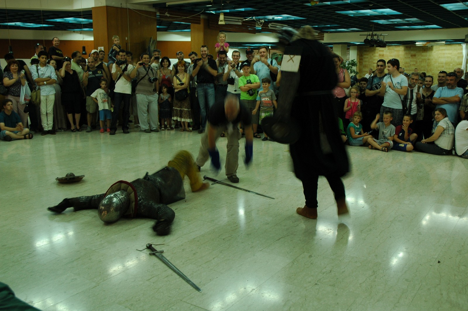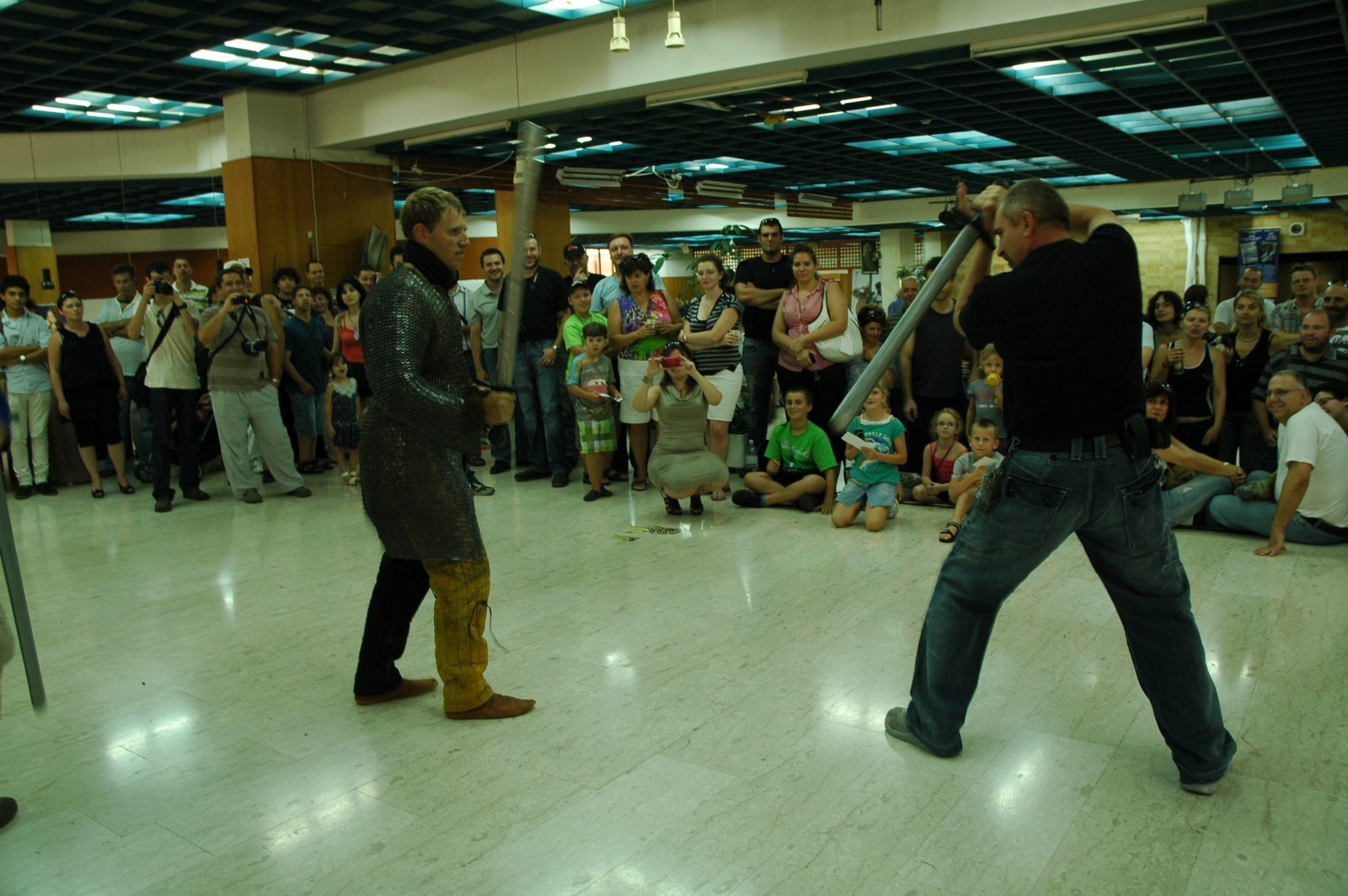 Так же приглашались все желающие почувствовать дух того времени, порубиться с ребятами на мечах, правда, тренировочных. Ну, хоть тренировочные, а то настоящими рубились бы - выставку пришлось бы свернуть... :lol:
