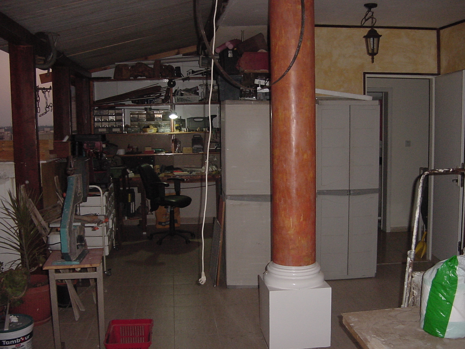 С вытяжкой загвоздка. Пока на застеклил - ветер носит. А потом может пылесос приспособлю. Хотя с моими обьёмами можно просто подмести. Колонна была изначально, но страаааашная. Облагородил, Все стены покрыл топлёным парафином, пыль можно смывать со шланга