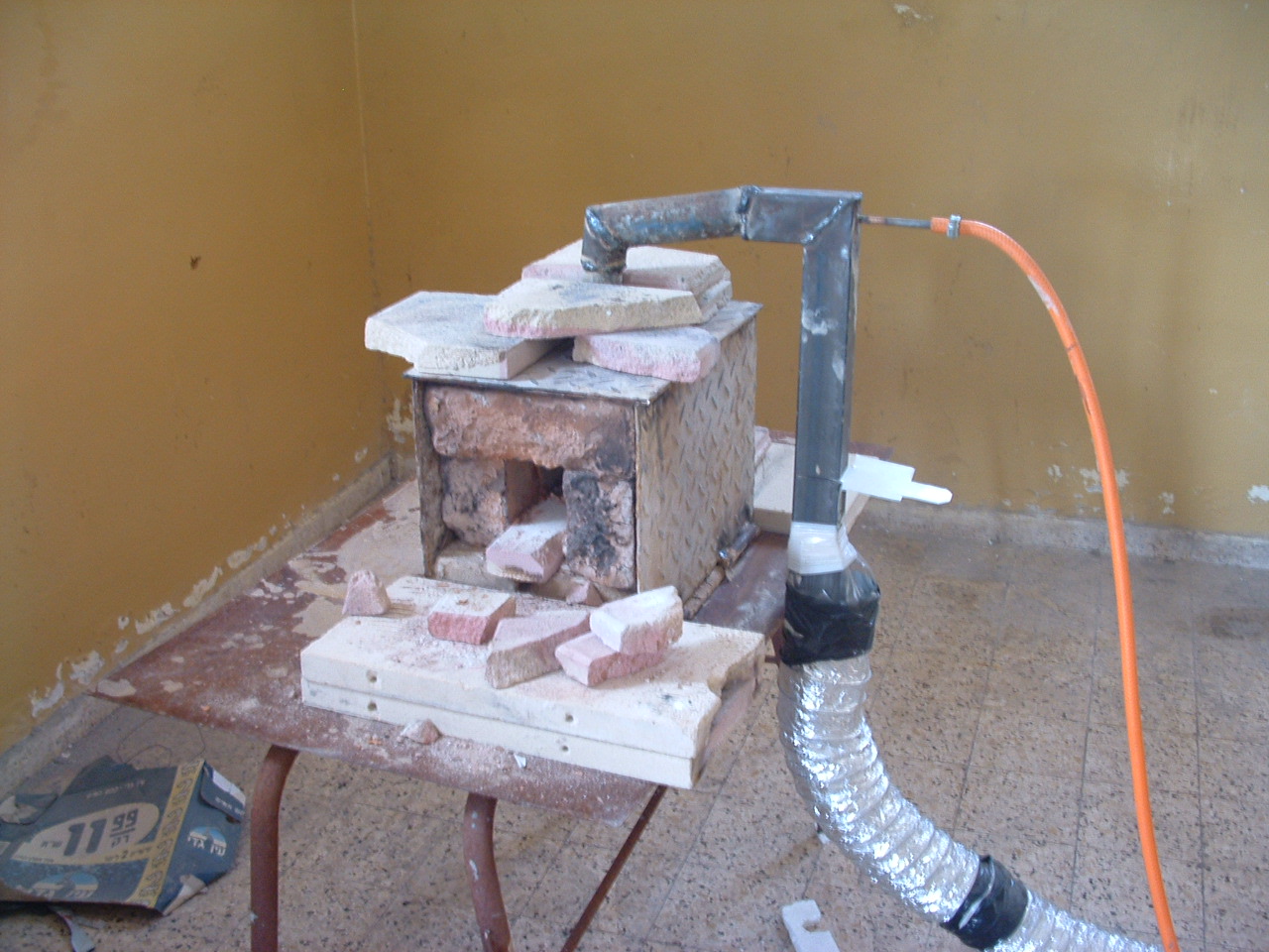Сбылись мечты!Свершилось!Учитывая перебои , с черным кокосом ,в Израиле и послушав мудрых и чистоплотных людей ,,накупив железа,, похал к сенсеичу .Руди помог сделать все,хотя увидев фото ,многие скажут ,,шо все?,, , а вот покажу сопелко ,а потом говорите!прастите за стиль , я в эйфории!Описание печь из листового железа 4мм, внутри выложеная тяжелым шамотом ( к сожалению керамической ваты не хватило,но нарысачим обовязково!),потом промазано жаростойкой глиной,вернее каждый кирпич купался в расворе и в печь ,сутки само сохло,потом запустил печь.Результат порадовал. При 0,5 амосфер 16 мм арматуру 150мм разогрела за 2,5 3 минуты до ковочной т . Шлакуетса только в путь.Думаю если из нутри ватой керамической облажить можно достигнуть и сварочной,хотя не пробовал не знаю.А ,есть поддув , форсунка- впаяная трубочка с отверстием 1мм.Главный плюс для меня , что метал не сгорает,ведь я шшляпа,и курить люблю!Кстати кто-то мне с г-зы предложил:,,мол вы что поехали печь без кислорода делать! Кулибины...,,Но я не решился.(2 детей)