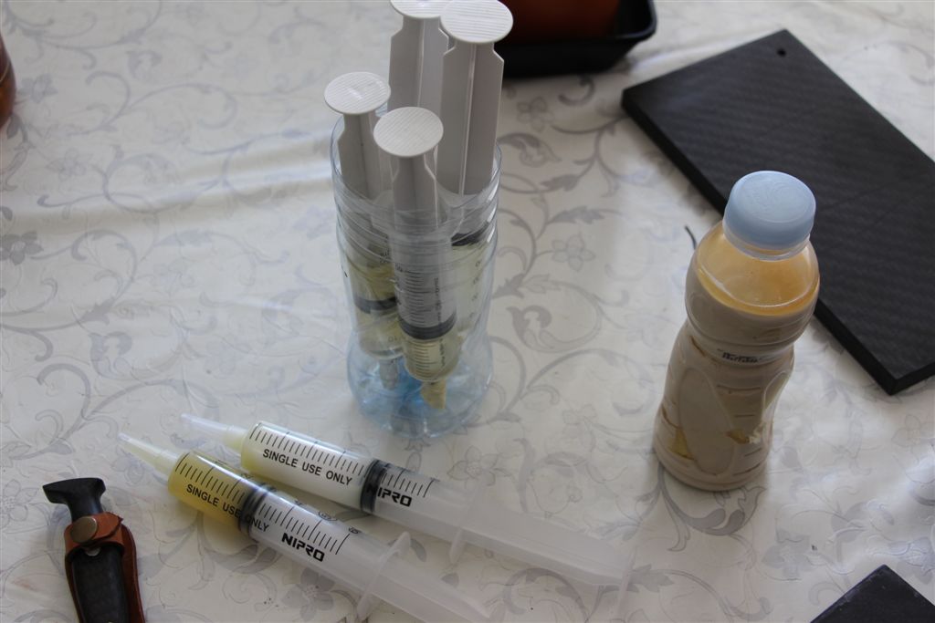 Отдельная тема - это эпоксидка Виктора .Она разная по свойствам - прозрачная , непрозрачная , но гланое - долгоиграющая , что позволяет заняться стабилизацией древесины , изготовлением микарты , а Виктору раскрыть свой творческий потенциал ( см. фото ). Эпоксидку я тоже забрал