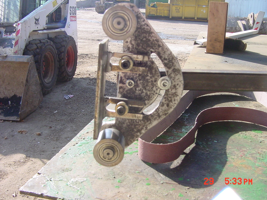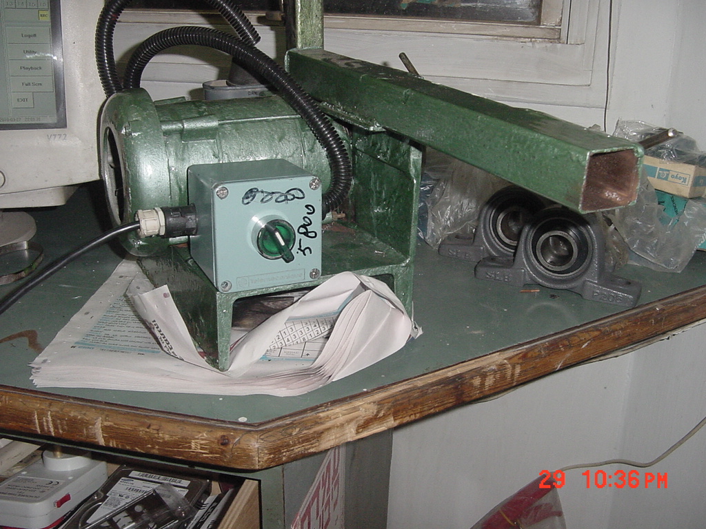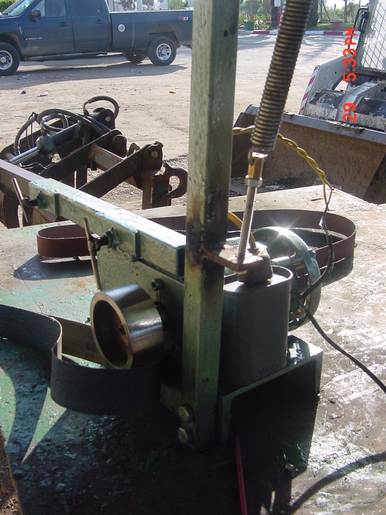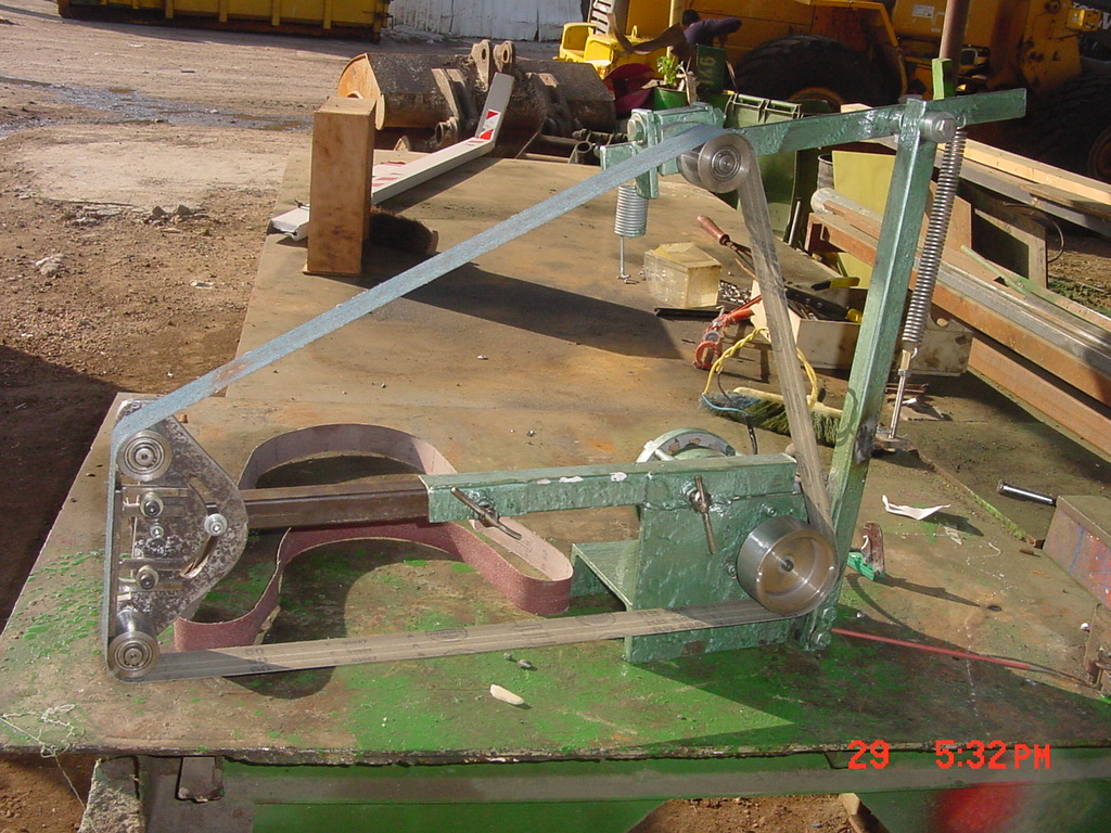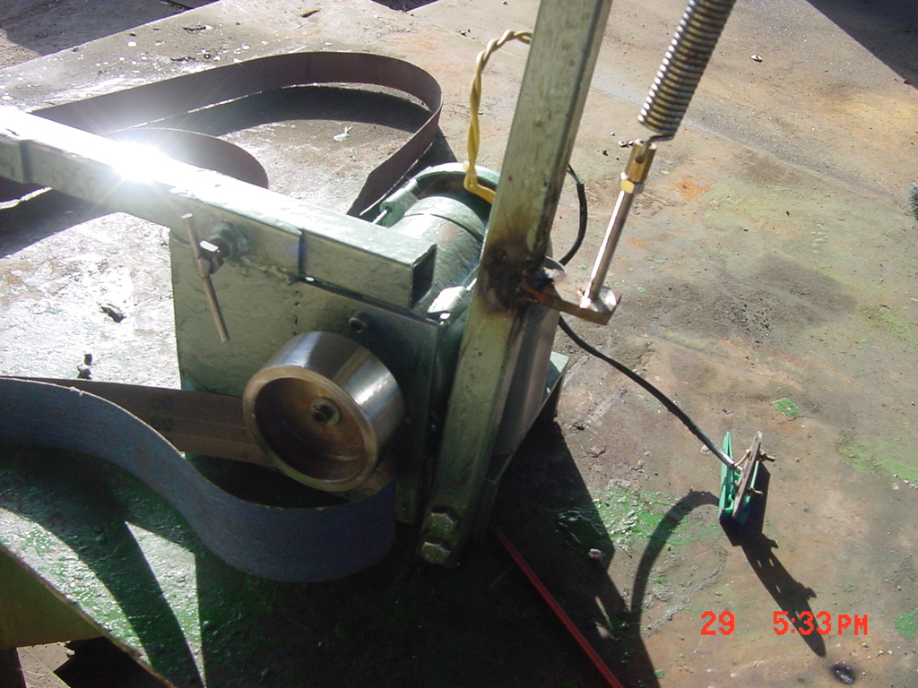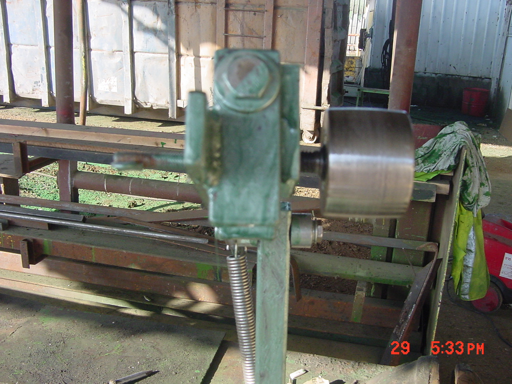 Выкладываю обещанные фото.Толко что переделал пружину, натяжение ленты теперь можно регулировать. Подсмотрел у Пети. Женя твоя лента подошла идеально, но я лоханулся с размерами роликов. Придется все время подгонять ширину ленты, или закажу другие ролики. Сижу привожу в порядок електрику.Если успею доделаю столик. Хочетса уже и колесо...но со временем. Спешить некуда.