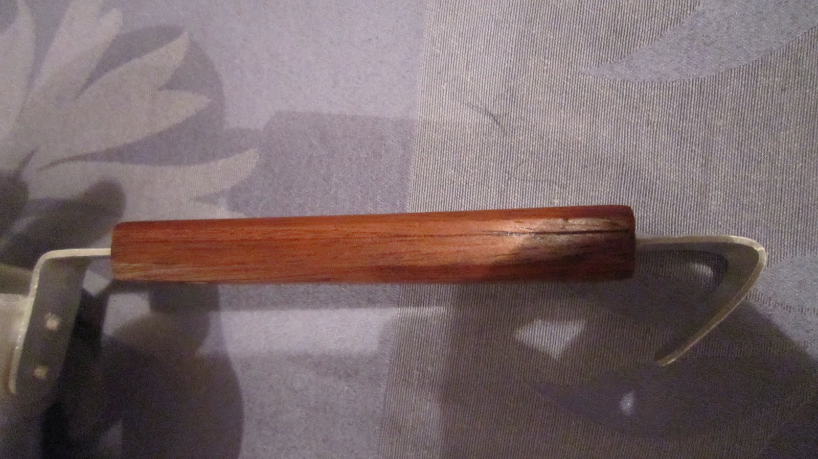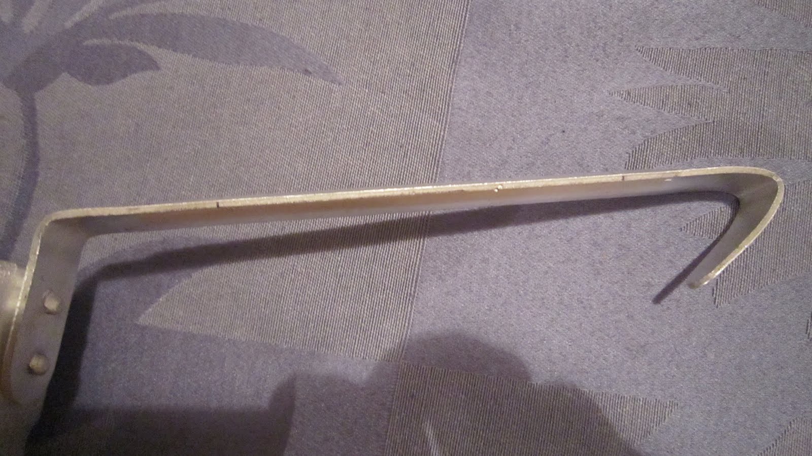 Насчет загнутого конца железной рукояти, я бы спилил нафик заподлицо с деревяшкой. Отдам на пробу, а там как пожелают, может вешать ее захотят...
